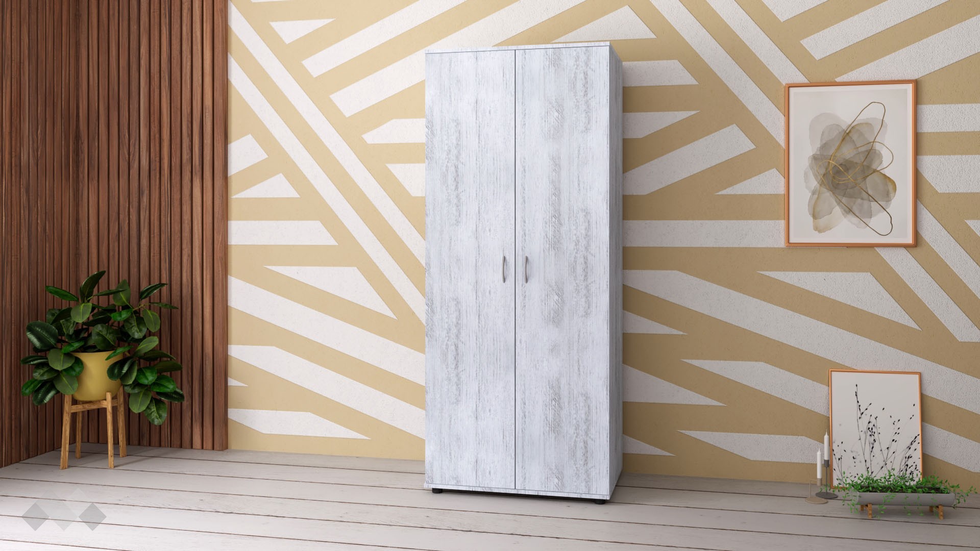 ✓ двукрилен ✓ практично разпределение ✓ 1 рафт ✓ лост за закачалки ✓ модерен декор ✓ качествена изработка