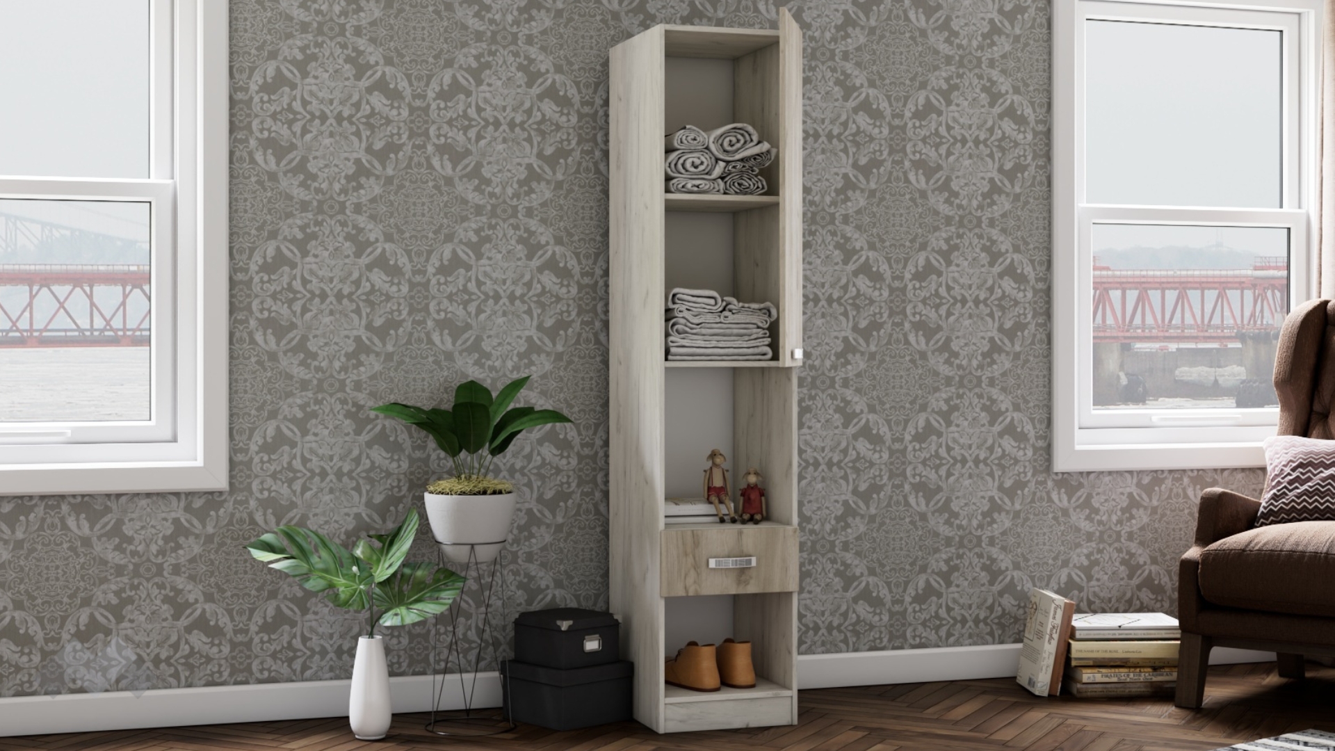 Високите шкафове винаги са били красив и практичен начин за устройване и организиране на допълнително място за съхранение във всеки дом. Те не заемат голяма част от полезното пространство в стаята, но предлагат функционалност и удобство. Благодарение на семплия си дизайн, висок шкаф с чекмедже и врата Адам ще се впише във всеки интериор.