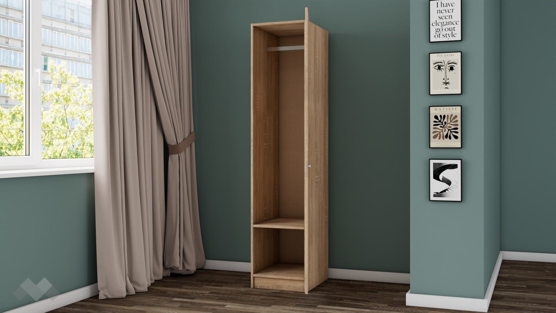 ⭐ Предимства: ✓ еднокрилен ✓ лост за закачалки ✓ компактен и удобен дизайн ✓ идеален за малки пространства ✓ 16 мм ПДЧ