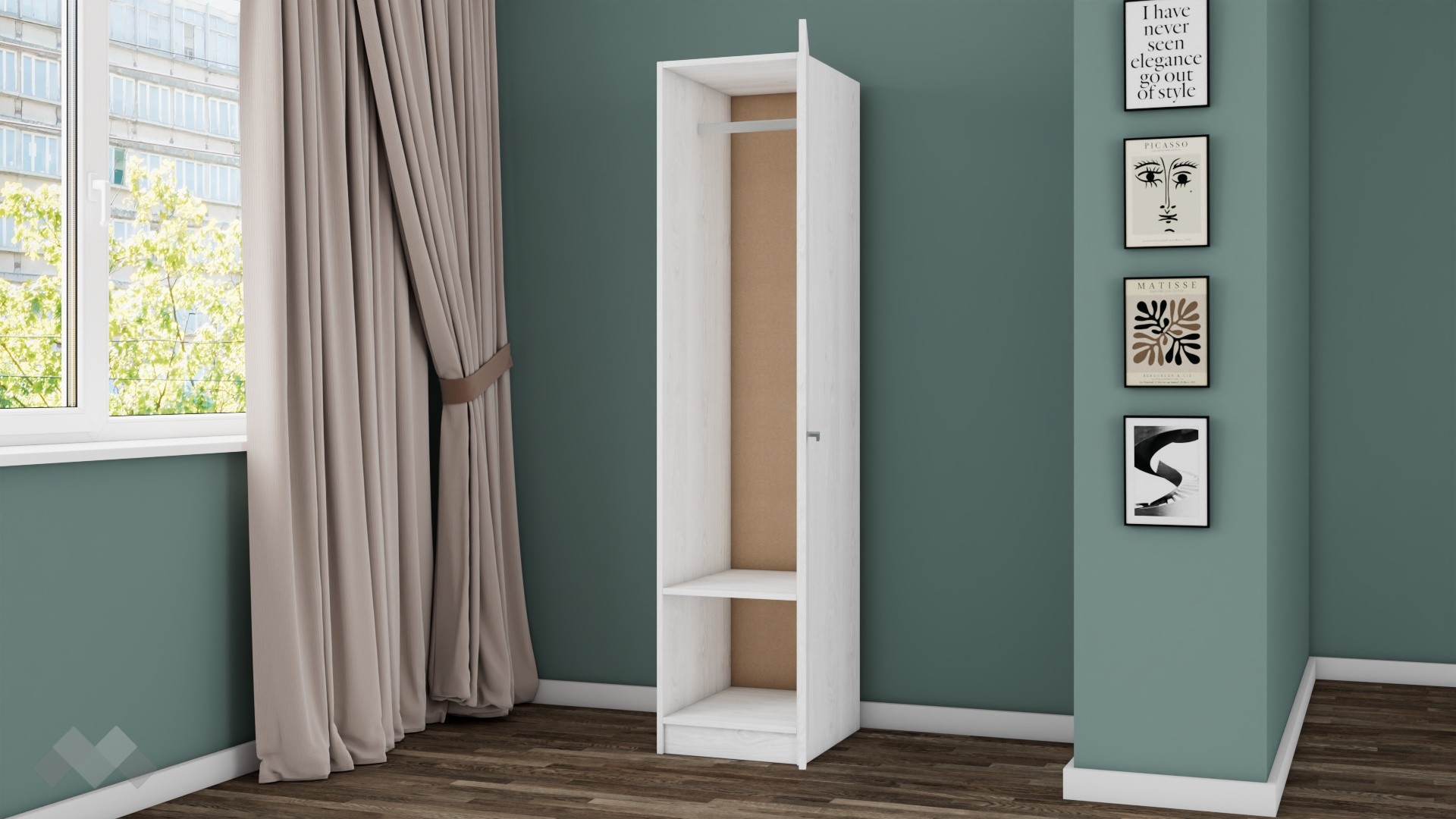 Еднокрилен гардероб Арго е практично и стилно решение за организиране на дрехи и аксесоари в по-малки пространства. Със своя изчистен и компактен дизайн този гардероб лесно се вписва в различни интериори и е особено подходящ за антре, спалня или детска стая.