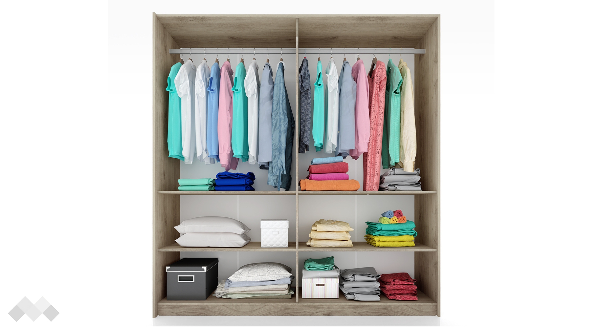 Гардеробът е с плъзгащи врати, просторен и много функционален. Разполага с два лоста за закачалки и четири широки рафта. Голямото огледало, разположено на една от вратите, прави стаята визуално по-голяма и осветена, а и е неотменен помощник в избора на тоалет всеки ден.