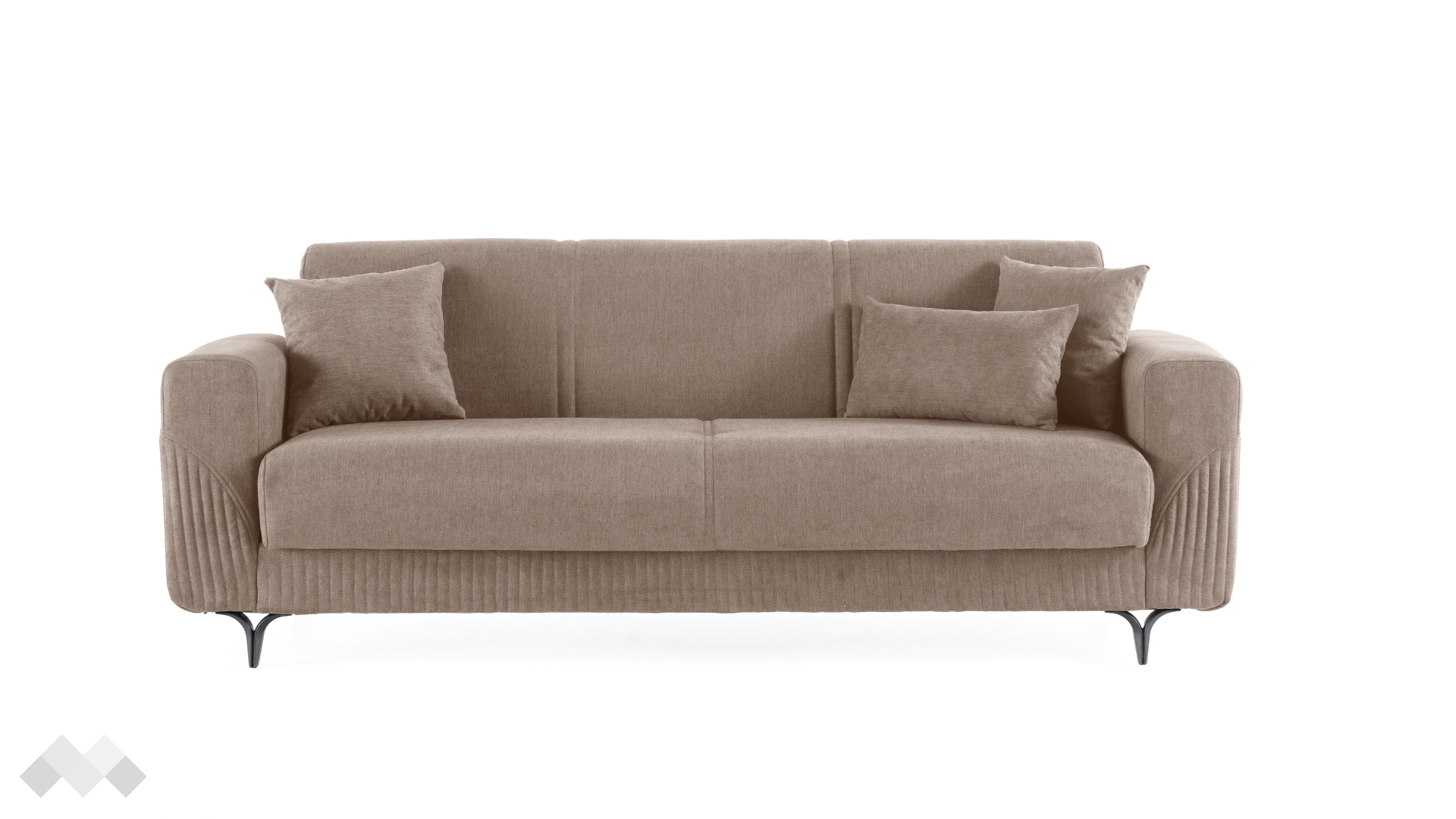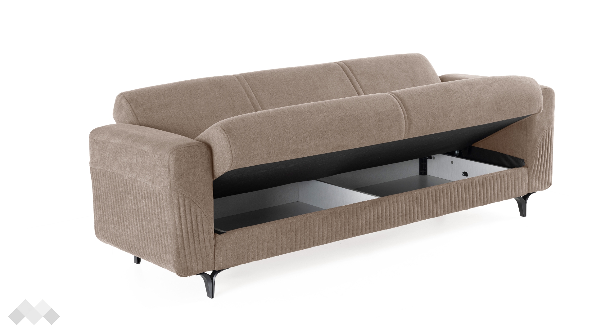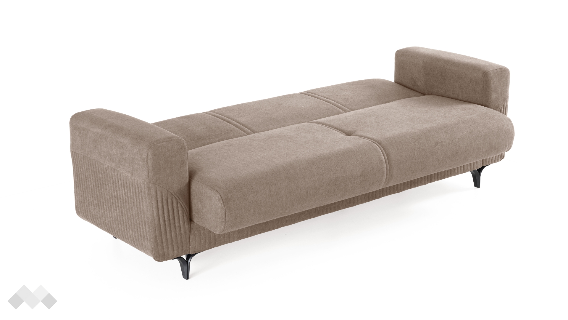 Създаден да впечатлява със своя външен вид, диван Атон е и функционален - с минимално усилие се превръща в комфортно и просторно легло - 104/182 см, посредством клик-клак механизъм. Диван Атон пристига в комплект с две възглавнички, които ще се превърнат в любимия ти помощник за следобедна дрямка. Под седалката ще откриеш още един плюс - ракла, в която можеш да съхраняваш вещите, които искаш да скриеш от погледа си, за да придадеш спретнат и подреден вид на стаята.