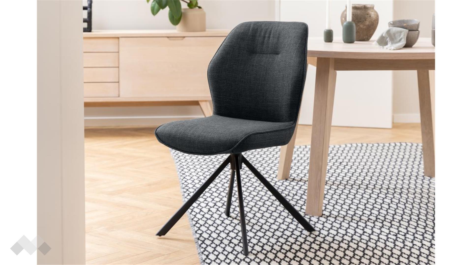 Текстилната дамаска с фина текстура придава изисканост и стил, а детайлите по дизайна допълват неговия съвременен характер. Стоманената 4-звездна основа гарантира стабилност и издръжливост, а въртящата се функция осигурява допълнителен комфорт в ежедневието.