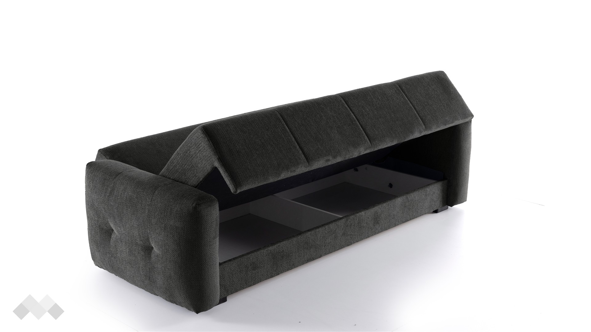 Практичната ракла под седалната част ти предлага дискретно място за съхранение на завивки, възглавници и други вещи, които искаш да са ти под ръка, но същевременно прибрани.