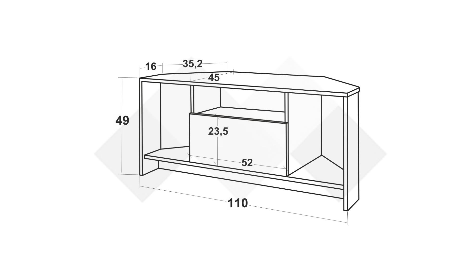 На твое разположение са два открити рафта, отворена ниша, затворен шкаф и удобен плот, на който можеш да поставиш своя телевизор. Отворената ниша под плота ти предоставя достатъчно пространство, където да поставиш цялата си съпътстваща техника като ТВ приемници, DVD плейъри и други. Рафтовете са идеални за подреждане на дискове, книги, сувенири, фотографии или стилни декорации. В затворения шкаф можеш да организираш вещите, които искаш да останат скрити, или техника, която не използваш толкова често, но в същото време ще ти е винаги под ръка.