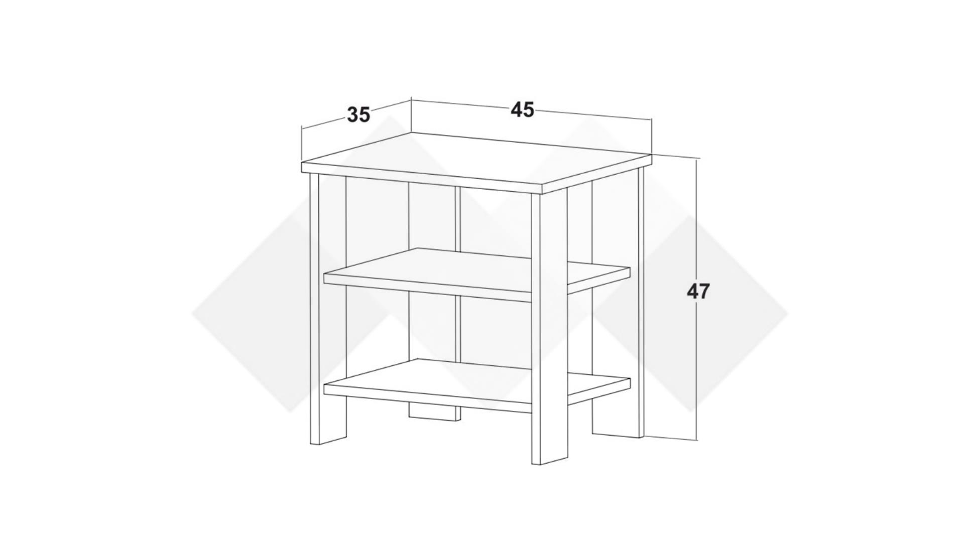 Нощен шкаф Борей е идеален за поставяне до леглото, осигурявайки лесен достъп до всичко необходимо през нощта или рано сутрин. Шкафът разполага с два отворени рафта, които предлагат удобно пространство за съхранение на книги, списания, будилник или други лични вещи, които искаш да бъдат на една ръка разстояние.