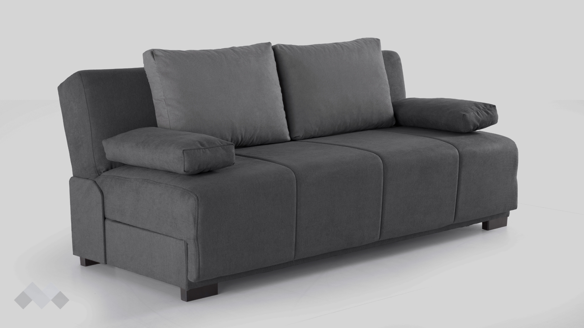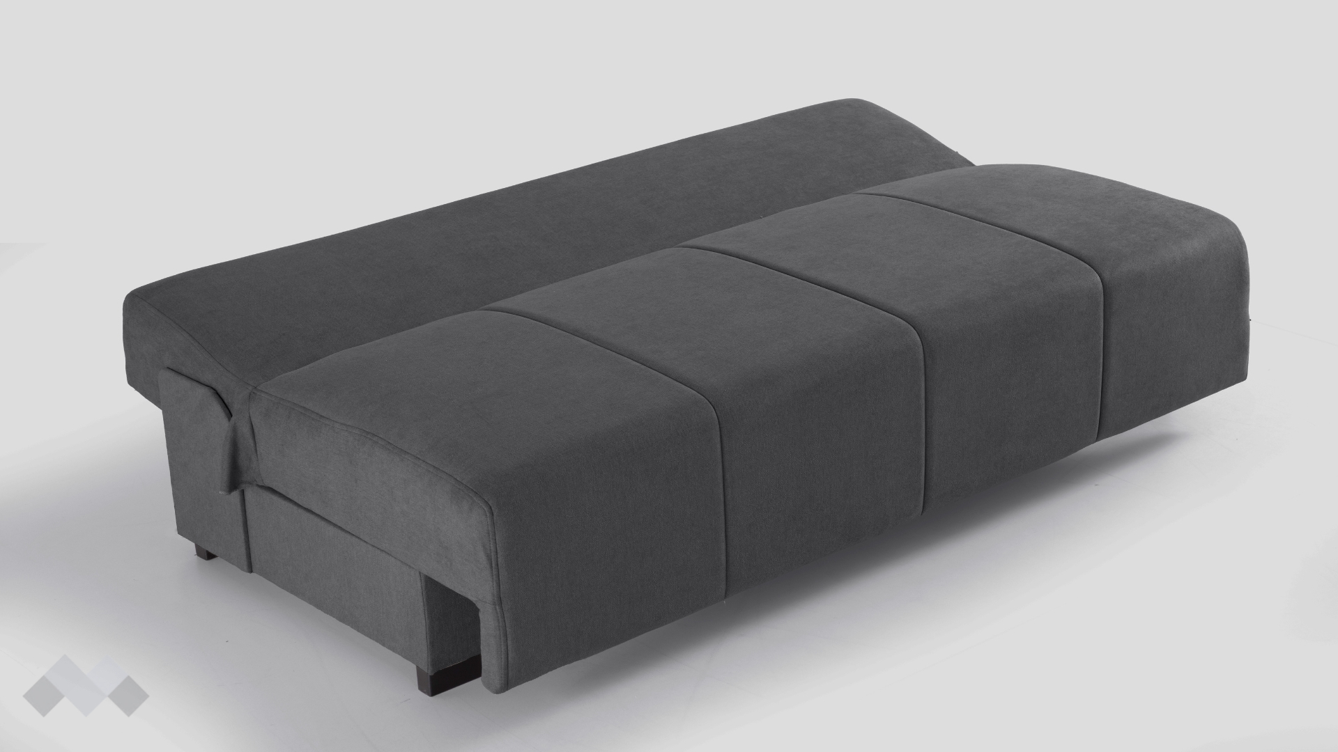 Канапето разполага с удобни възглавници за подлакътници, които осигуряват допълнителна опора при седене и могат лесно да се премахнат, за да се освободи повече пространство за отдих. Под меката седалка ще откриеш практична ракла – идеална за съхранение на одеяла, възглавници или други домашни принадлежности. А когато имаш нужда от легло, само с едно движение трансформираш канапето в удобна площ за сън, благодарение на лесния за използване клик-клак механизъм.