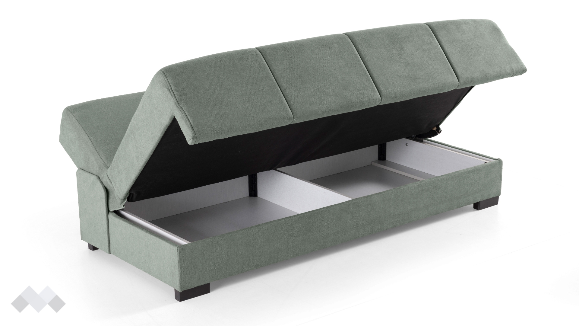 Канапето разполага с удобни възглавници за подлакътници, които осигуряват допълнителна опора при седене и могат лесно да се премахнат, за да се освободи повече пространство за отдих. Под меката седалка ще откриеш практична ракла – идеална за съхранение на одеяла, възглавници или други домашни принадлежности. А когато имаш нужда от легло, само с едно движение трансформираш канапето в удобна площ за сън, благодарение на лесния за използване клик-клак механизъм.