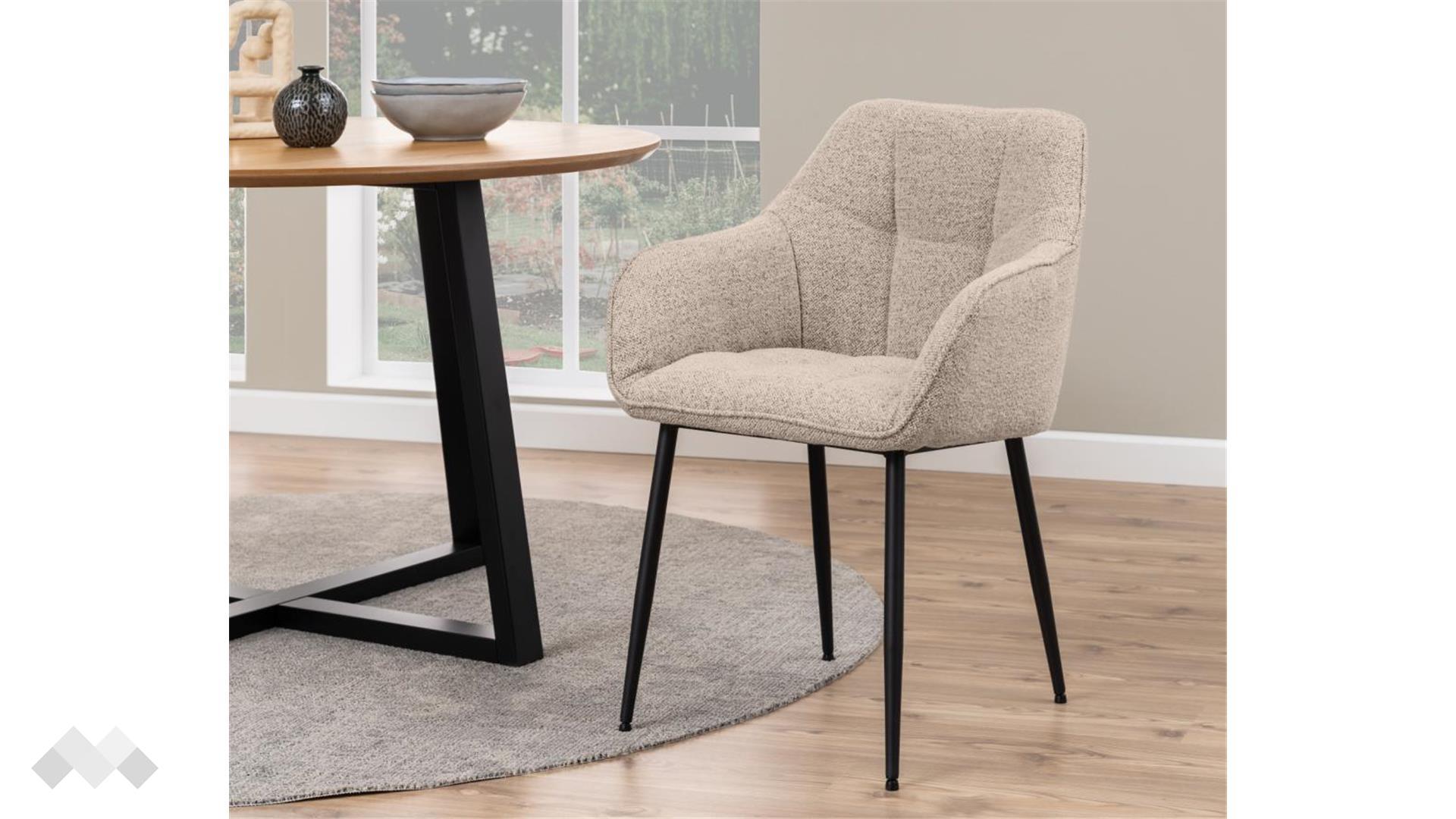 Трапезен стол Бренда впечатлява с комфорт и стил, предлагайки елегантна визия и удобство. Тапицираната седалка и текстилната дамаска създават усещане за мекота, а подлакътниците осигуряват допълнителен комфорт.