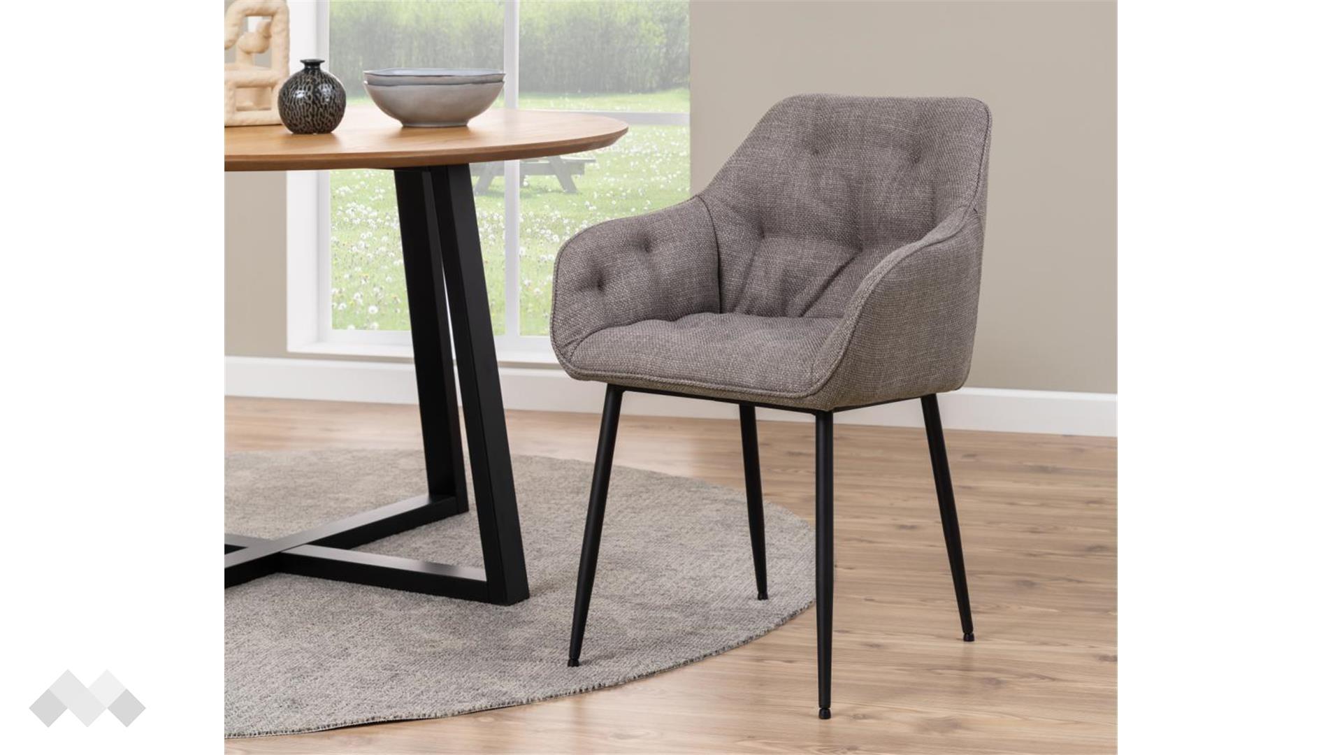 Стабилните стоманени крака гарантират устойчивост и дълготрайна употреба, без да натоварват визията на стола. Благодарение на класическия си дизайн, Брук се вписва хармонично както в трапезарията, така и във всекидневната.