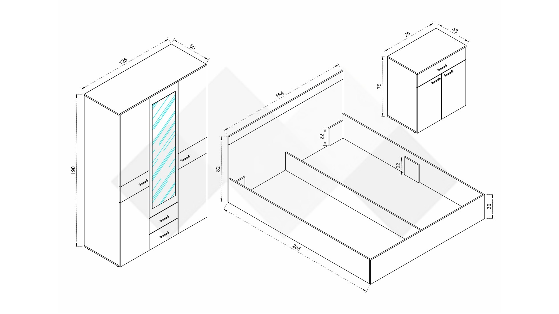 Спален комплект Дани D1 ще внесе усещане за стил и уют и ще направи спалнята ти мечтано кътче. Разполага с всичко, от което се нуждаеш – спалня, гардероб с отлично разпределение и скрин с чекмедже и шкафче с две вратички.