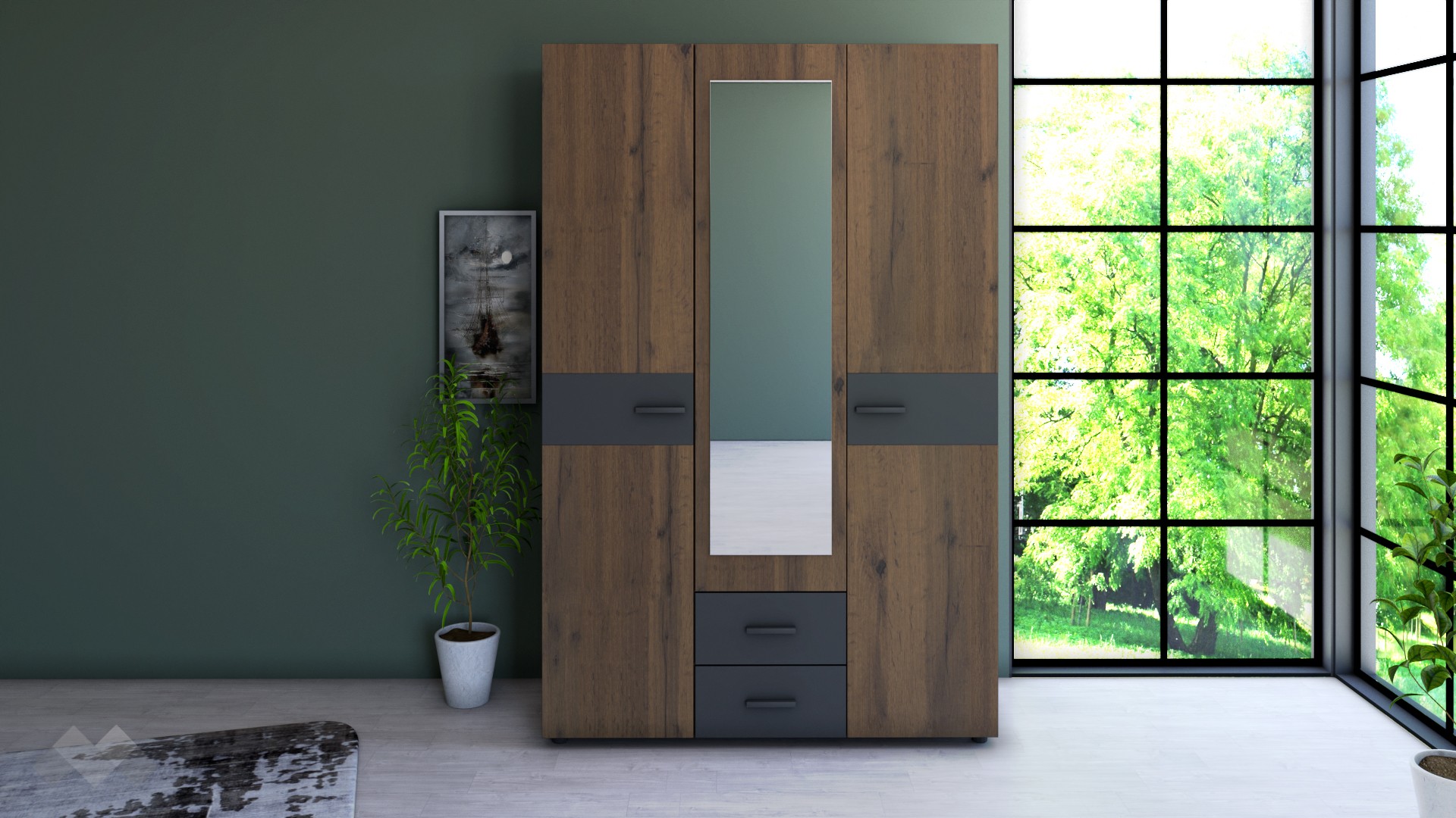 ⭐ Предимства: ✓ WNR меламиновото покритие ✓ 3 рафта ✓ лост за закачалки ✓ 2 чекмеджета ✓ огледало ✓ модерен дизайн ✓ качествена изработка ✓ 16 мм ПДЧ