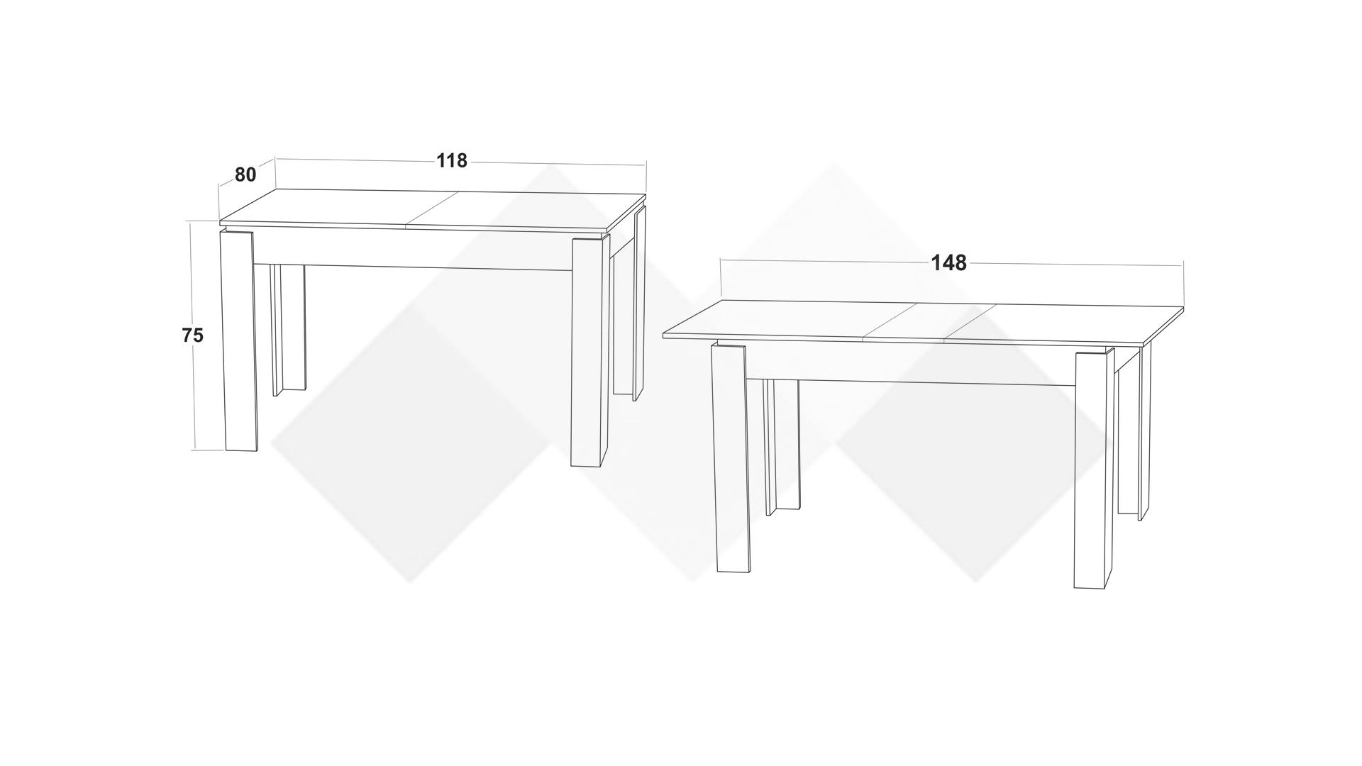 Благодарение на класическия си и елегантен дизайн, трапезна маса Дени ще намери място във всеки дом. Имаш гости? Веднага можеш да ги поканиш без притеснение около масата, тъй като тя придобива размери 148/80 см и ще има място за всички.