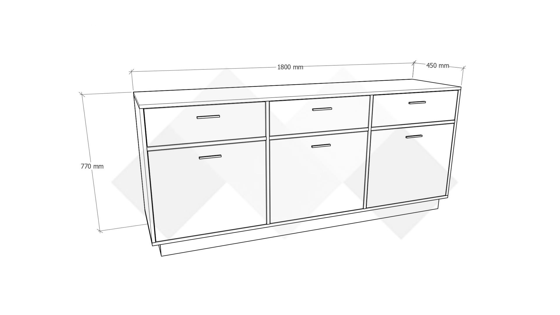 На твое разположение са три чекмеджета и три шкафа. Моделът е универсален и ще намери приложение във всяка стая. Можеш да го поставиш в спалнята, където да ти предостави допълнително място за дрехи и бельо, а върху горния плот може да подредиш козметика, аксесоари или ефектна декорация. Скринът може да бъде и чудесно допълнение към всекидневната, където да ти послужи за организиране на всички вещи, за които не намираш място в секцията. Ако имаш нужда от допълнително място за обувки и аксесоари, можеш да го поставиш и в антрето.