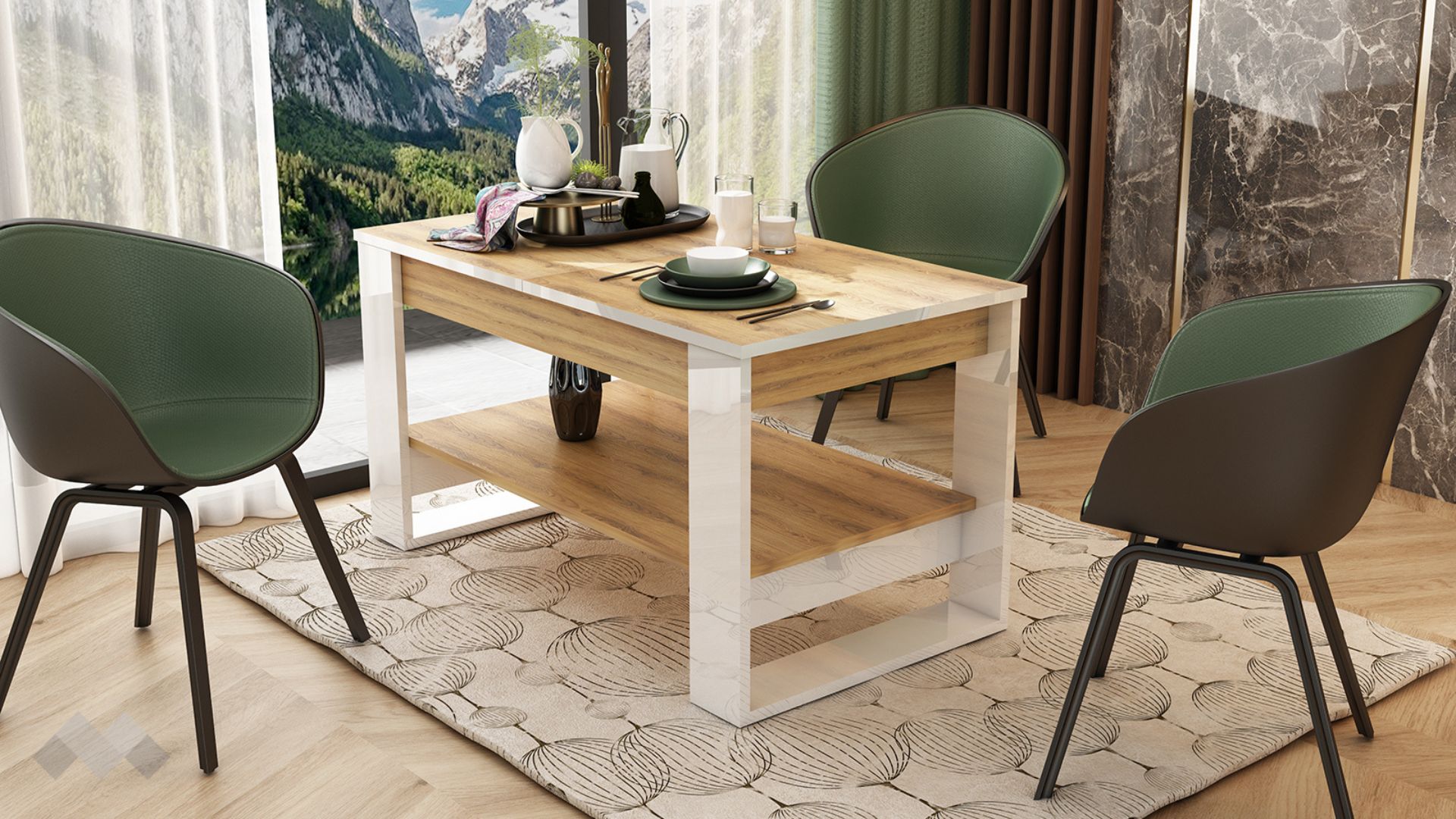 Разтегателна холна маса Денвър съчетава стил и функционалност. С елегантен дизайн и висококачествени материали, тя лесно се преобразува от компактна масичка в по-голяма маса за гости.