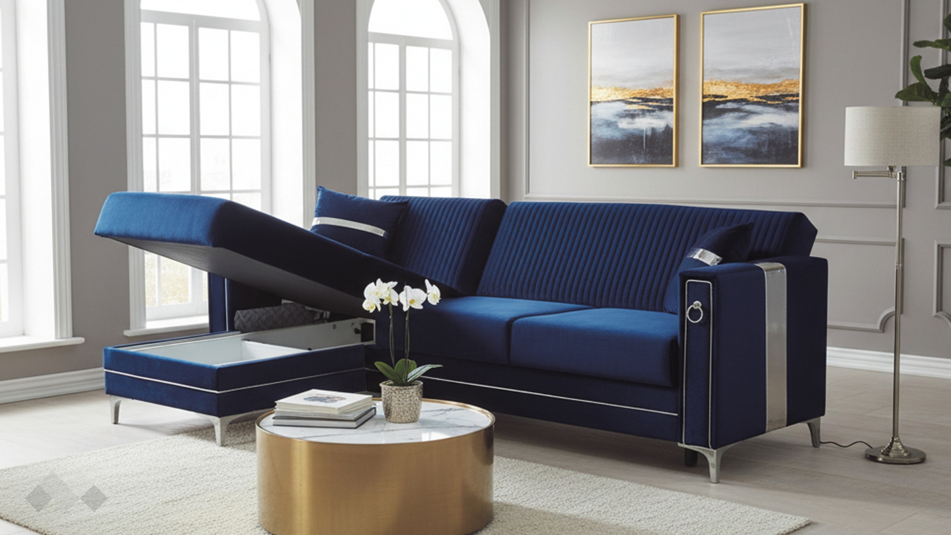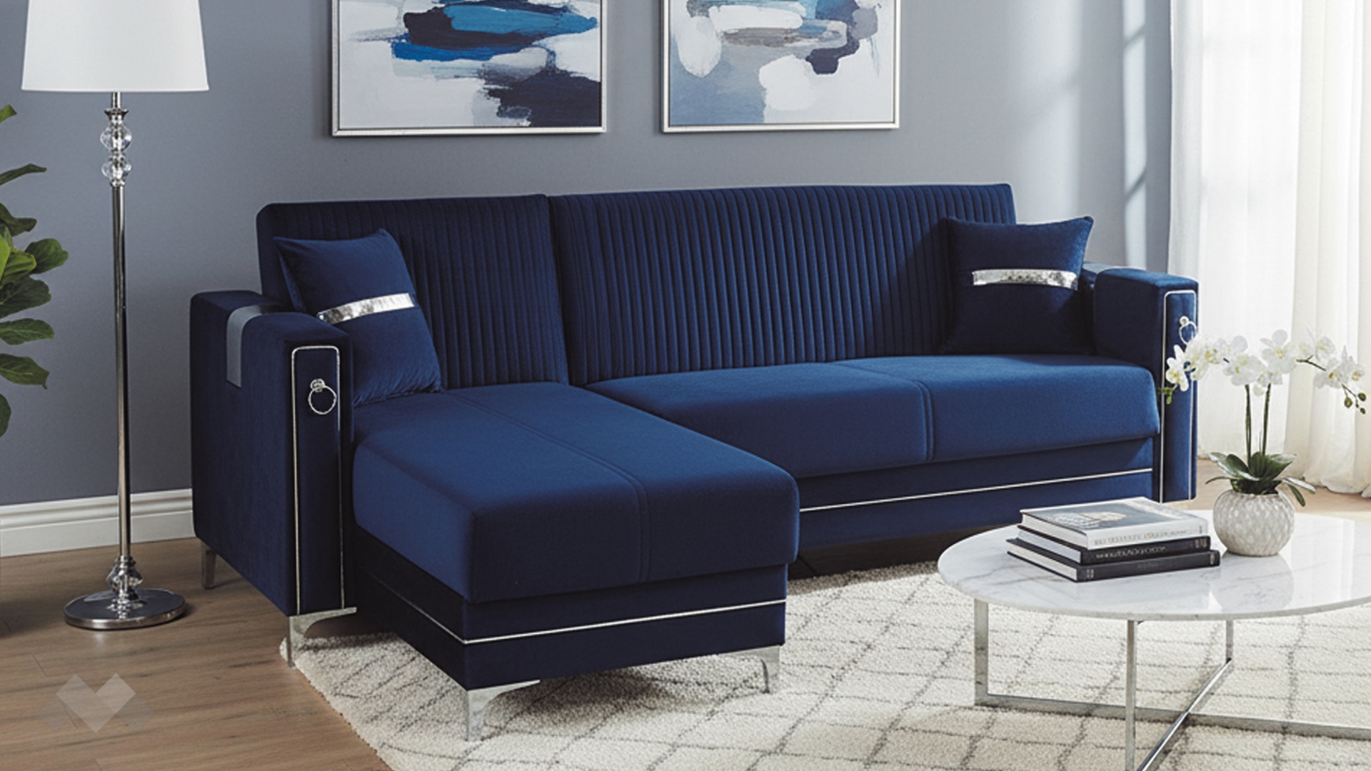 Изискан и елегантен, ъглов диван Дестини, впечатлява с изключително внимание към детайла. Моделът комбинира наситени цветове с изящни сребристи акценти, които му придават исискан стил и създават усещане за класa и елегантност.