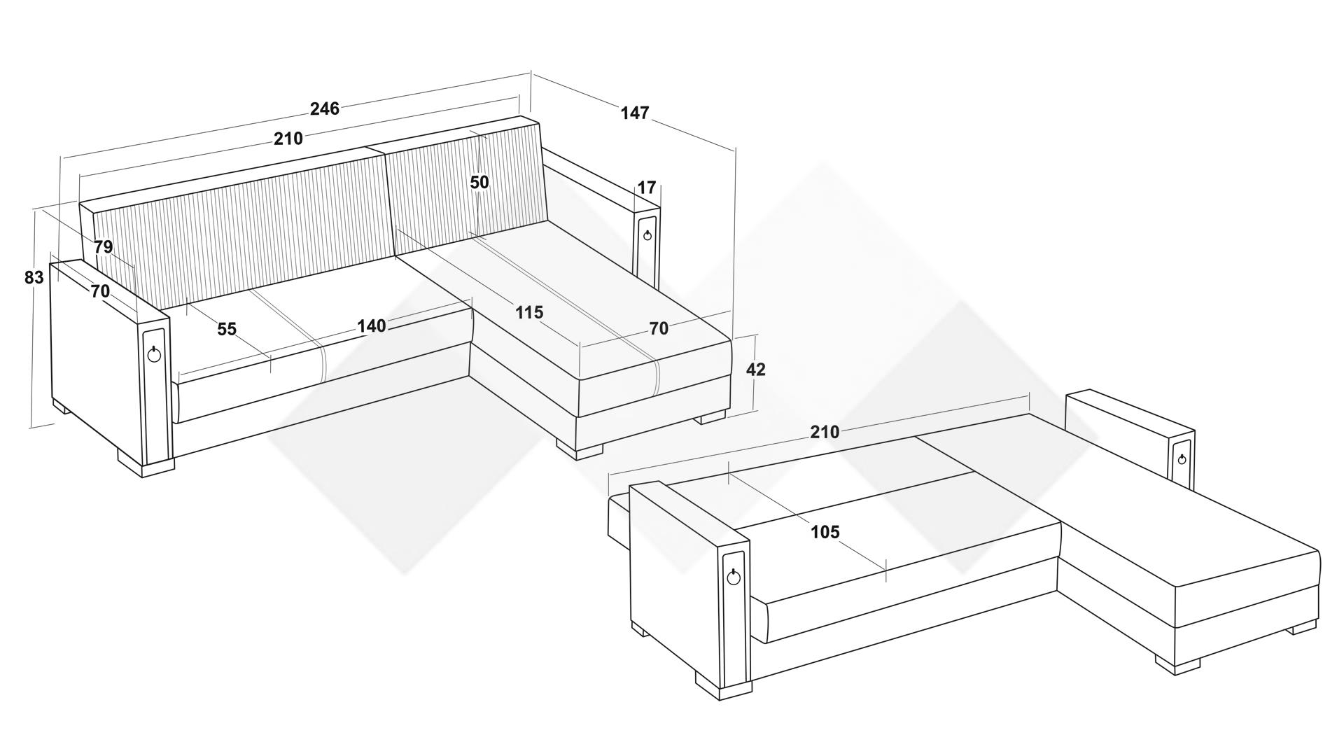 Освен стилен, Ъглов диван Дестини с унивесална посока е и функционален - с минимално усилие се превръща в комфортно и просторно легло с размери 105/210 см, благодарение на клик-клак механизъм. А под лежанката се крие просторна ракла, в която може да съхраниш завивки, още възглавници или вещи, които да са на една ръка разстояние.