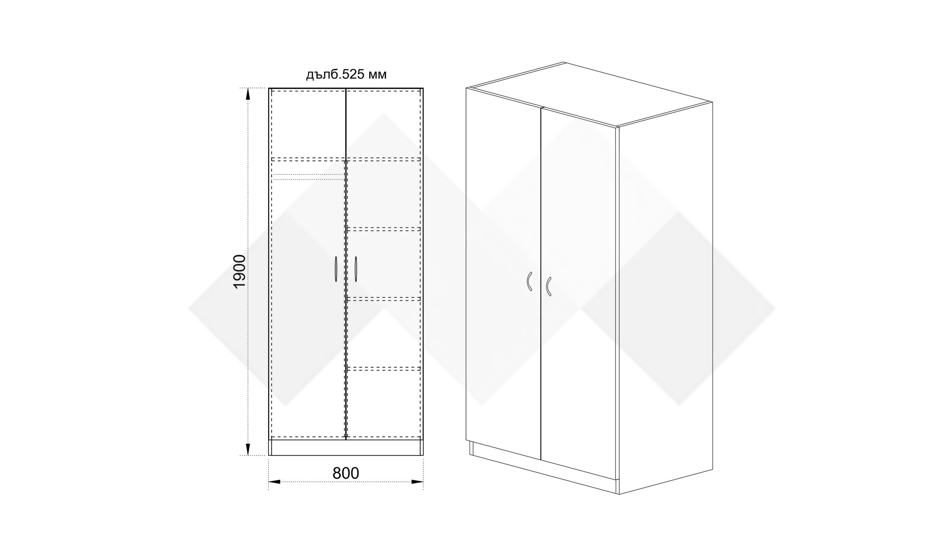 ⭐ Предимства: ✓ двукрилен ✓ 5 рафта ✓ лост за закачалки ✓ механизъм за плавно затваряне ✓ модерен декор ✓ практично разпределение ✓ качествена изработка ✓ 16 мм ПДЧ