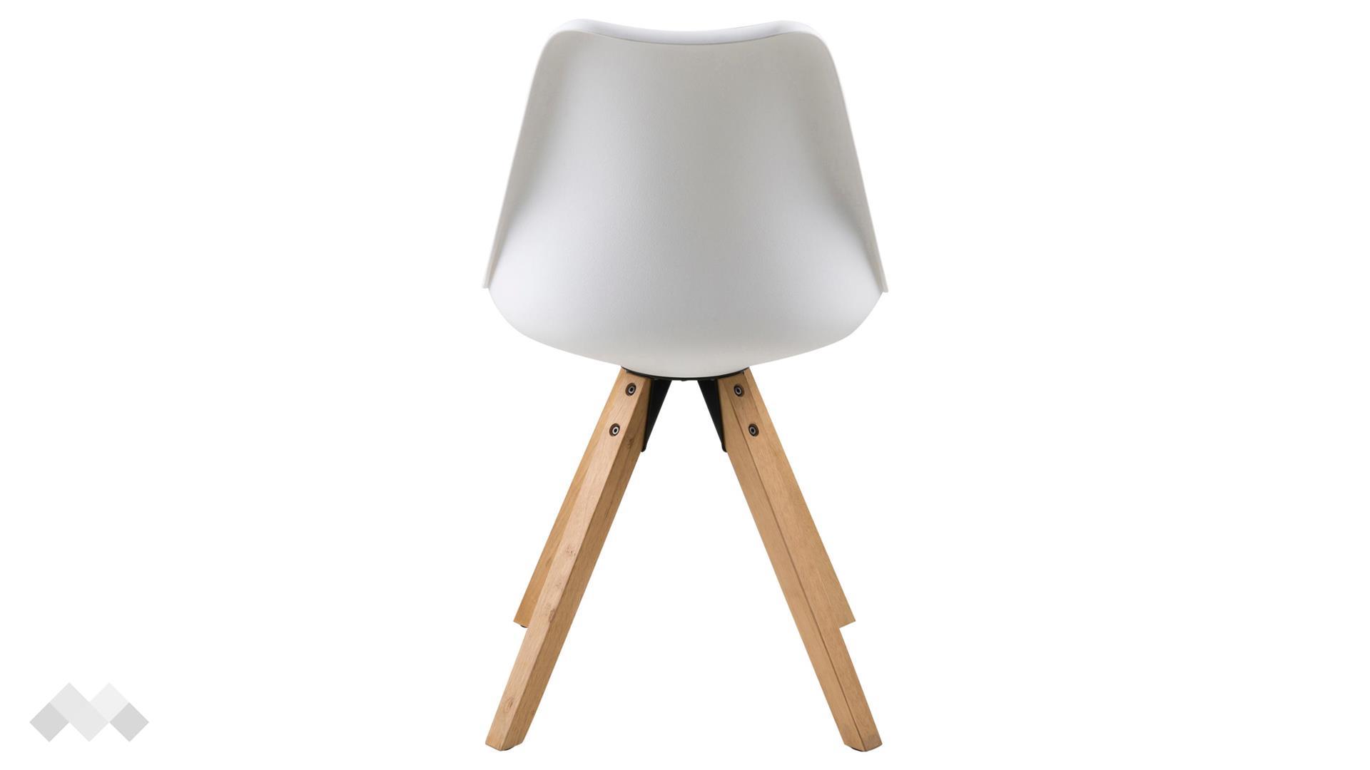 Седалката на стола е проектирана да осигурява стабилна опора, а фиксираната възглавница допринася за приятно изживяване при сядане. Здравата дървена основа с лакирано покритие гарантира устойчивост и допълва скандинавския стил на дизайна.