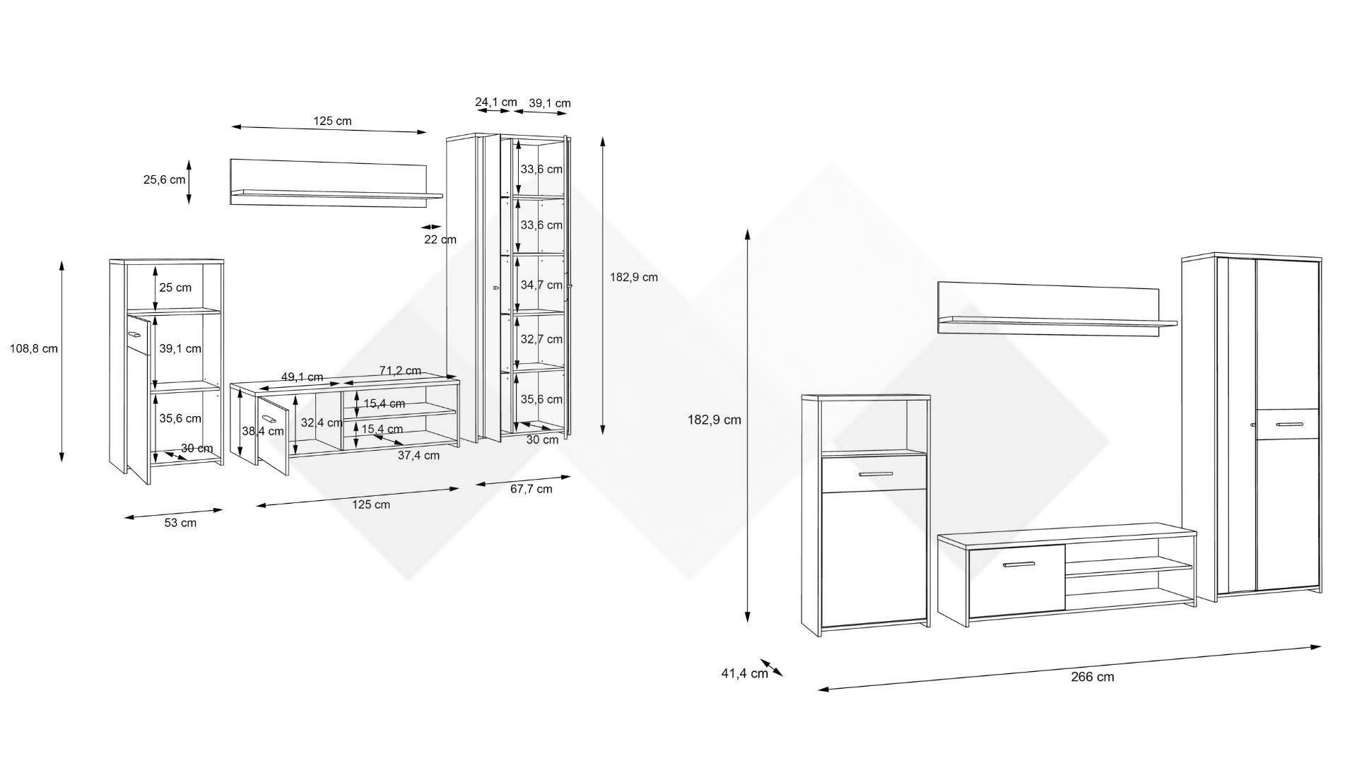 ТВ шкаф: Д: 125 см Ш: 41,4 см В: 38 см