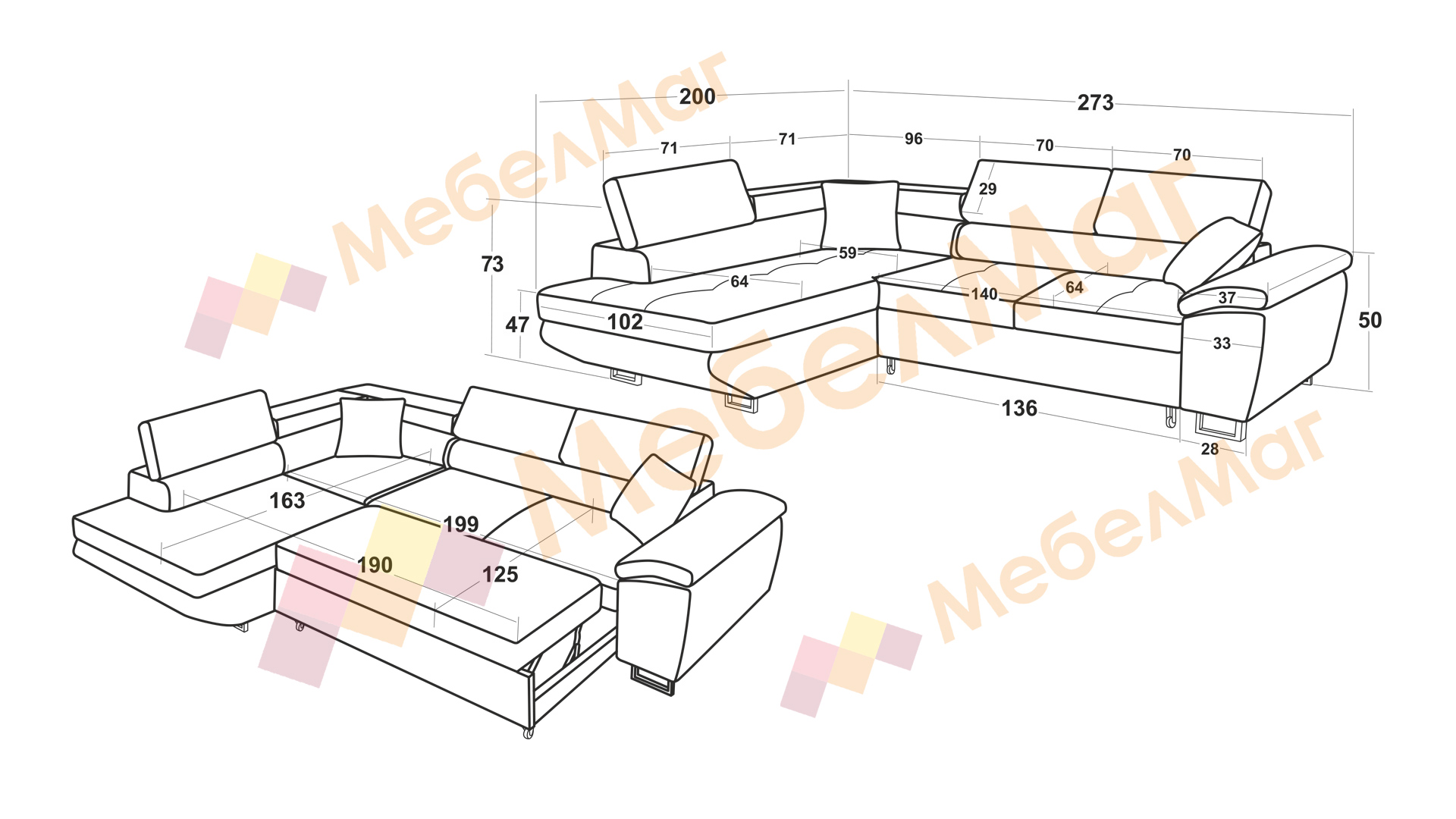 Д: 273 см. Ш: 200 см. В: 73 см.