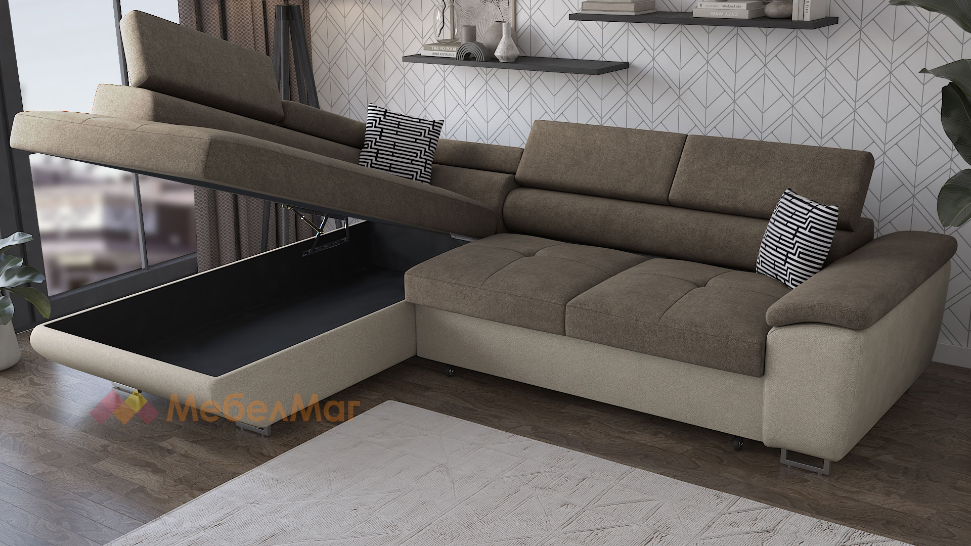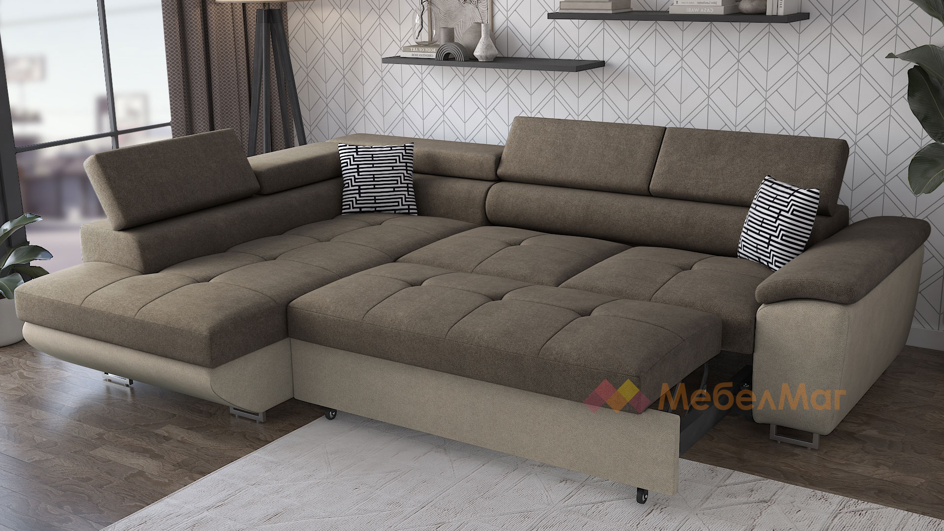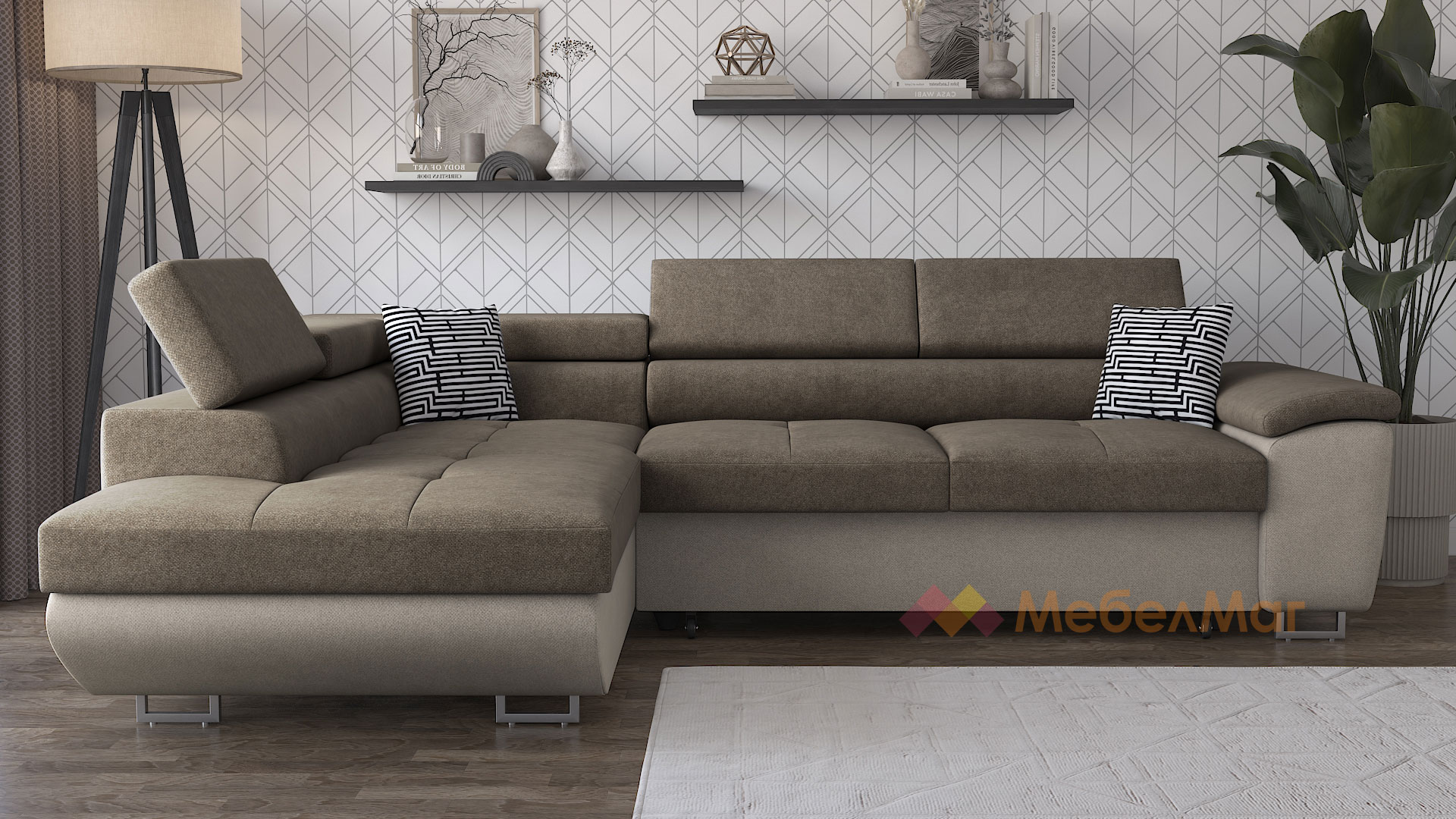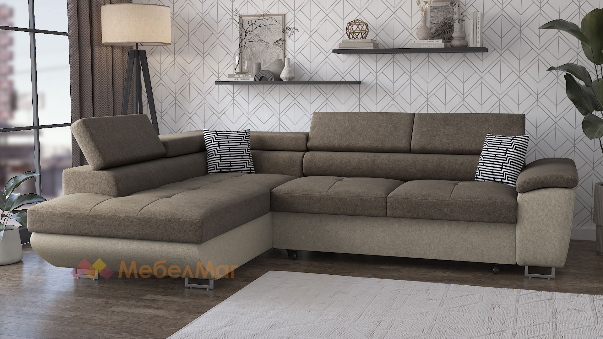 Ъглов диванЕдуардкафяв с бежово с посока: ляв ъгъл