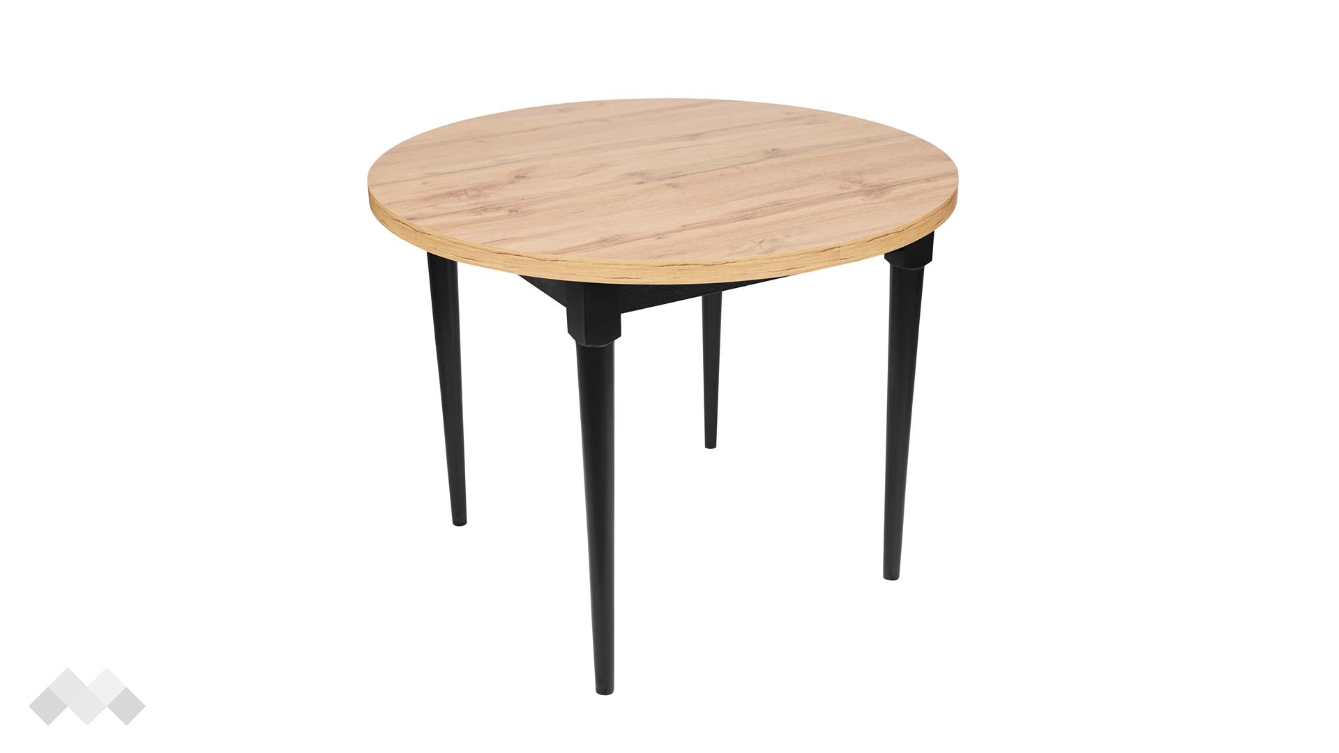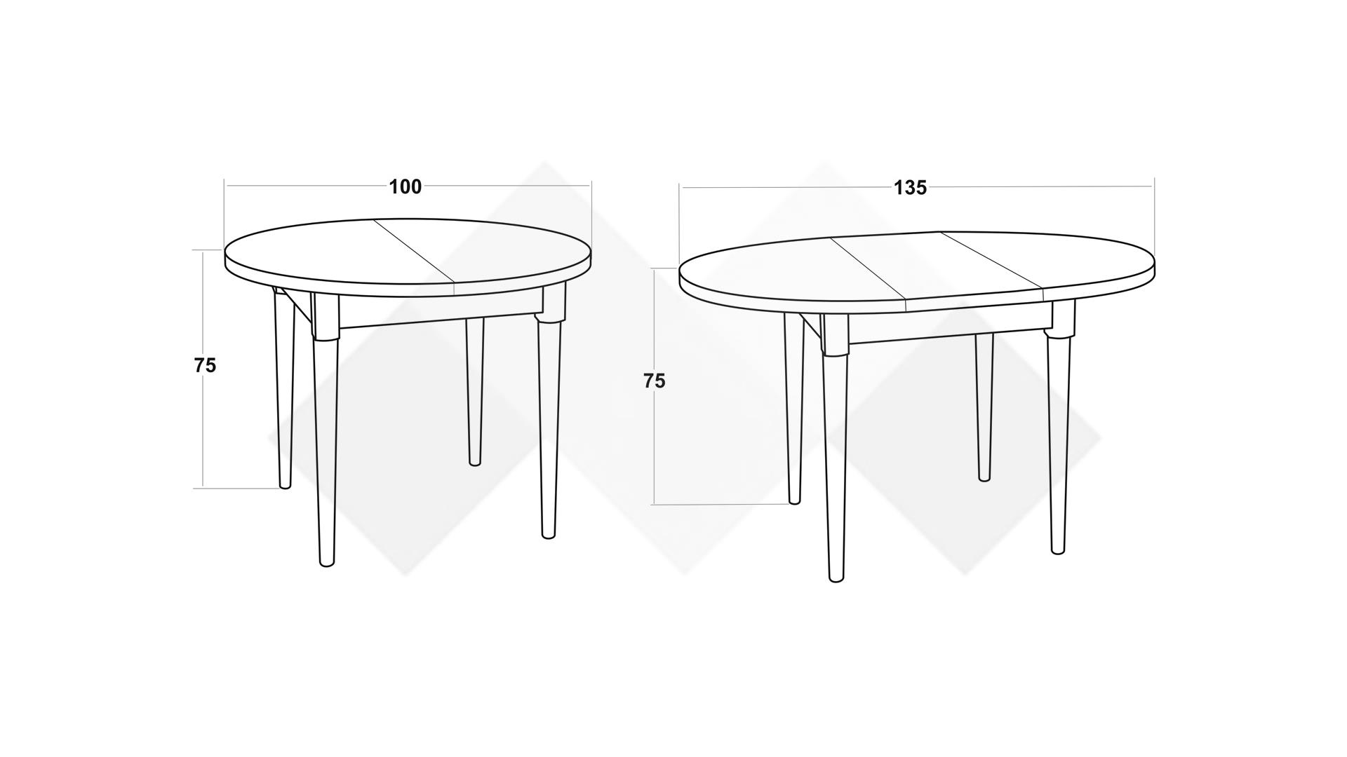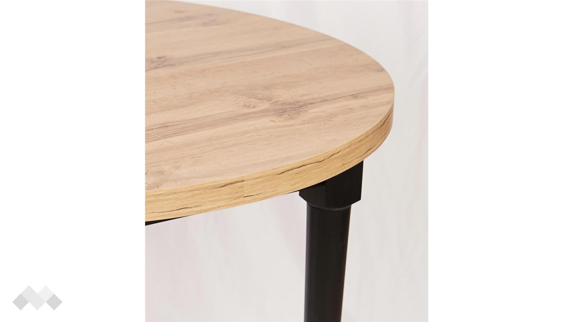 Трапезна маса Емъри е изпълнена в класически стил с правилни линии и кръгъл плот. Масата има няколко предимства - разтегателна е, без остри ръбове, без ъгли и би се вписала във всяка малка трапезария. А когато имаш гости, без притеснения можеш да събереш всички около нея, тъй като можеш да я разпънеш до маса с размер 135 см. Линията на краката е изчистена и придава усещане за премереност.