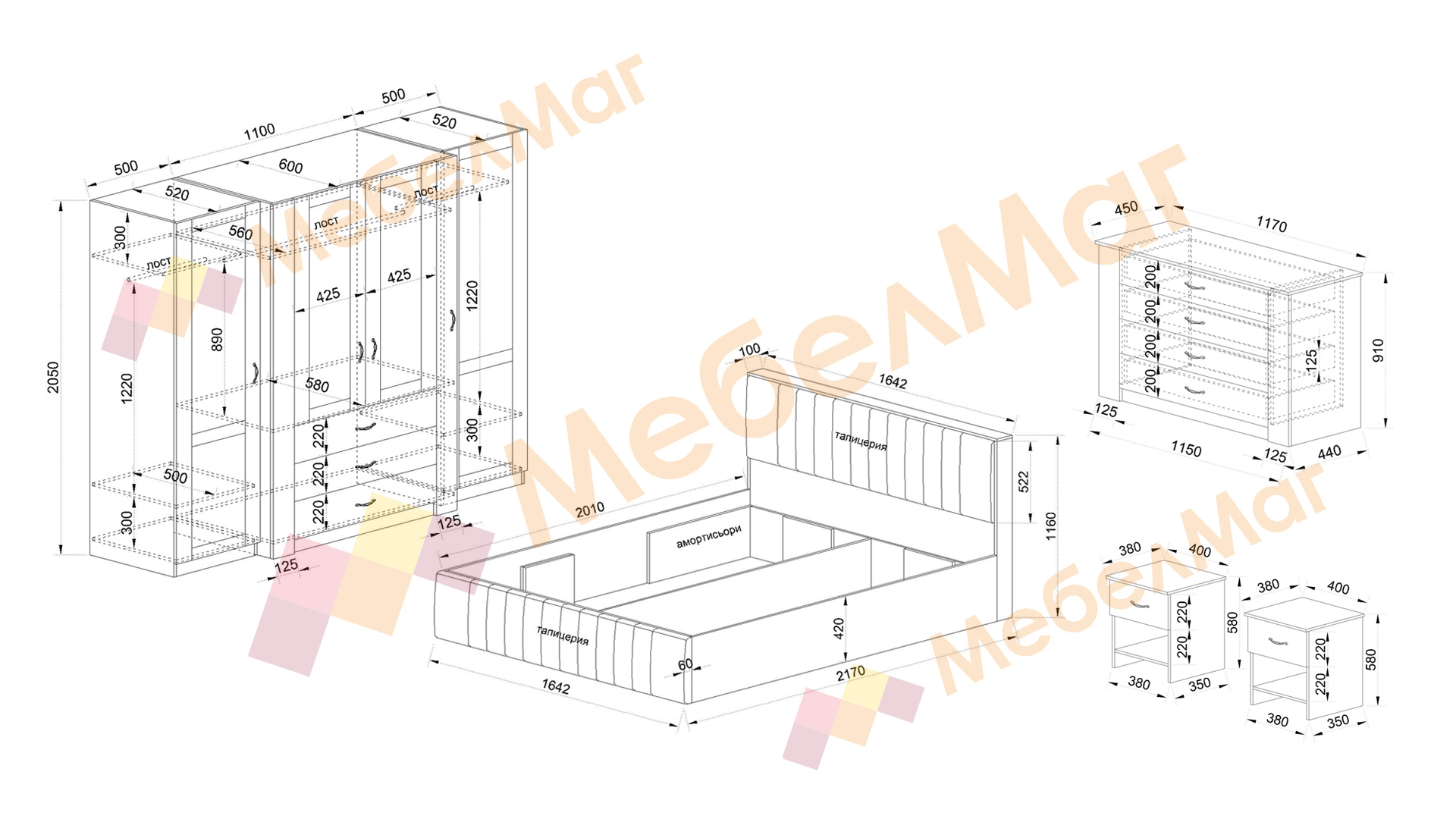 ✓ тапицирана спалня ✓ четирикрилен гардероб ✓ скрин ✓ 2 нощни шкафчета ✓ повдигащ механизъм ✓ механизъм за плавно затваряне ✓ модерен дизайн ✓ висококачествена изработка ✓ 16 мм ПДЧ ✓ 18 мм МДФ