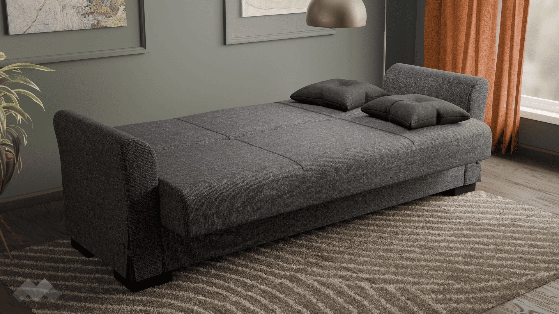 Благодарение на клик-клак механизма, диванът се трансформира бързо и лесно в удобно легло с размери 180/103 см. Само с едно движение можеш да го разгънеш или прибереш, което го прави изключително удобен за ежедневна употреба или за настаняване на гости. Под седалната част ще откриеш още един практичен плюс – удобна ракла, в която можеш да съхраняваш завивки, възглавници и други вещи. Дамаската е приятна на допир, изработена от здрав и устойчив текстил.