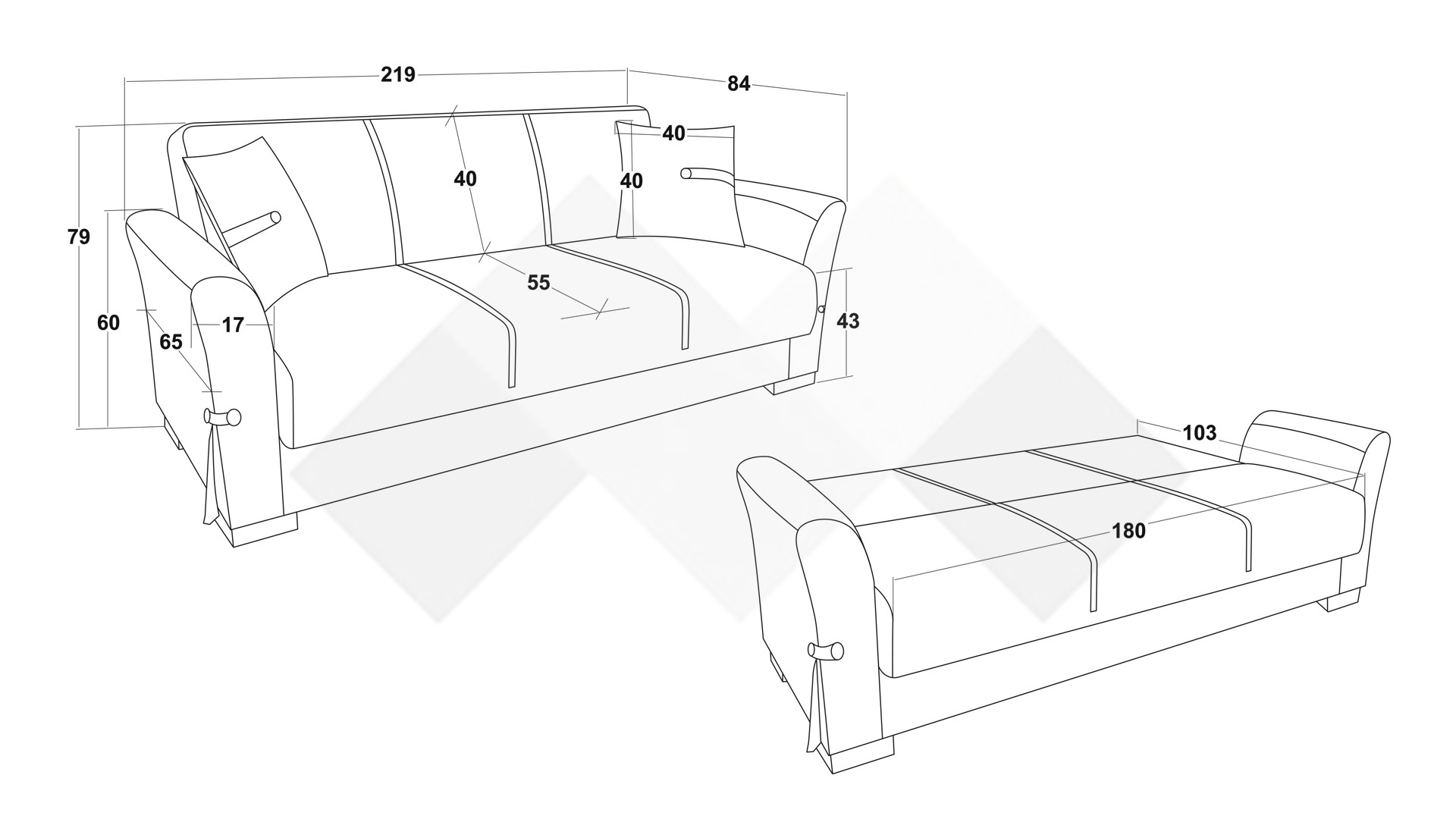 Д: 219 см Ш: 84 см В: 79 см