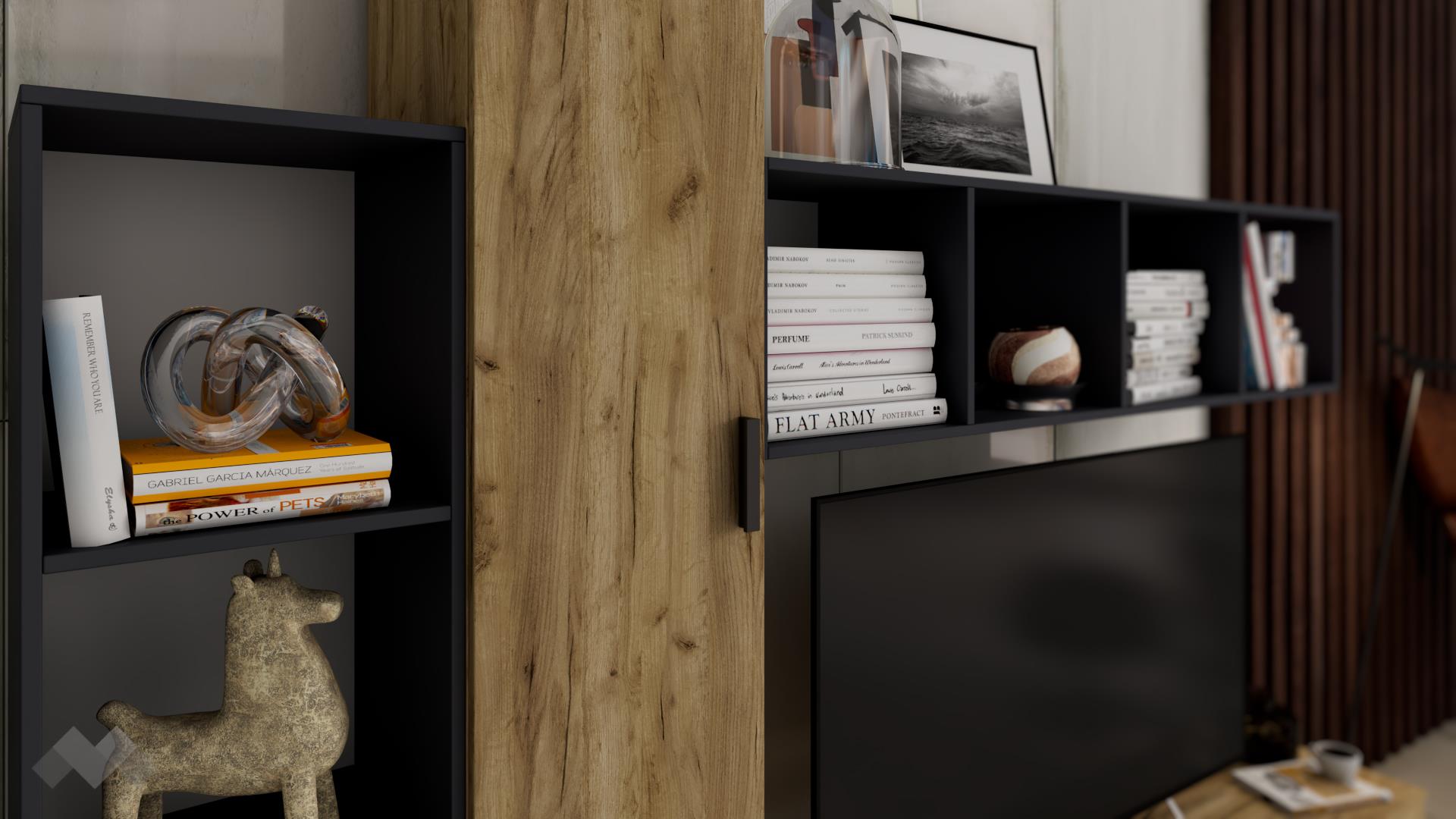 СекцияФрешзлатен дъб и антрацит с открити рафтове