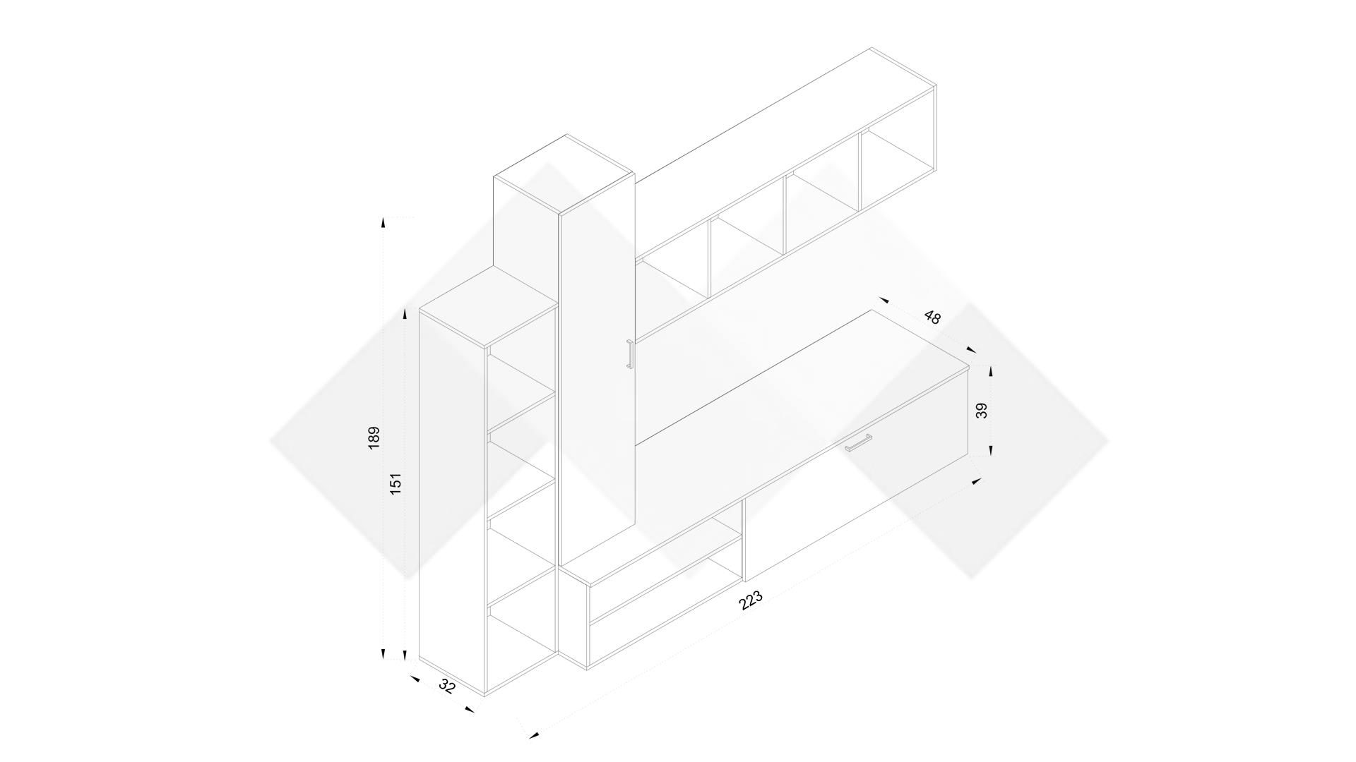 Д: 223 см Ш: 48 см В: 189 см