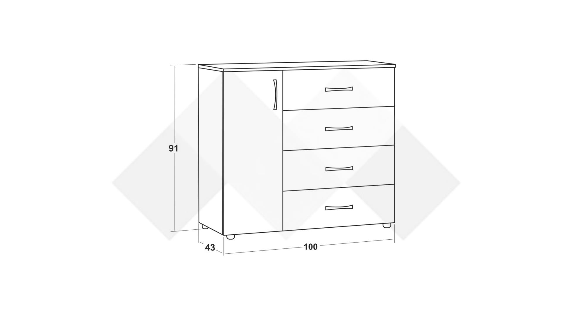 Скрин Галати разполага с четири просторни чекмеджета, в които можеш да организираш дрехи, бельо, аксесоари или други необходими за теб вещи. От лявата страна на чекмеджетата е разположен затворен шкаф, който ти предоставя допълнително място за съхранение. Горният плот е чудесно място за подреждане на декорации, книги, козметика или други вещи, които искаш да ти бъдат винаги под ръка.