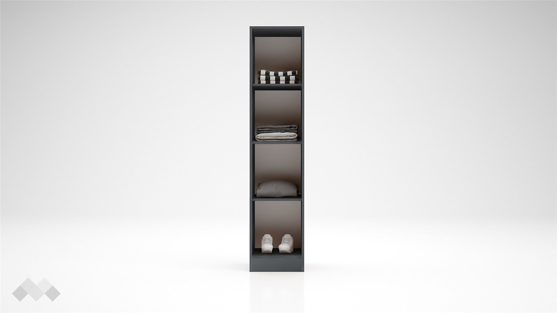 Функционалното разпределение на модела ще ти позволи да подредиш прилежно всички дрехи и аксесоари. Вратата се отваря леко и ти дава бърз достъп до всичко – зад нея ще откриеш три рафта, на които можеш да организираш сгънати дрехи, завивки, възглавници, аксесоари или други необходими за теб вещи. За допълнително удобство вратата е снабдена с механизъм за плавно затваряне.