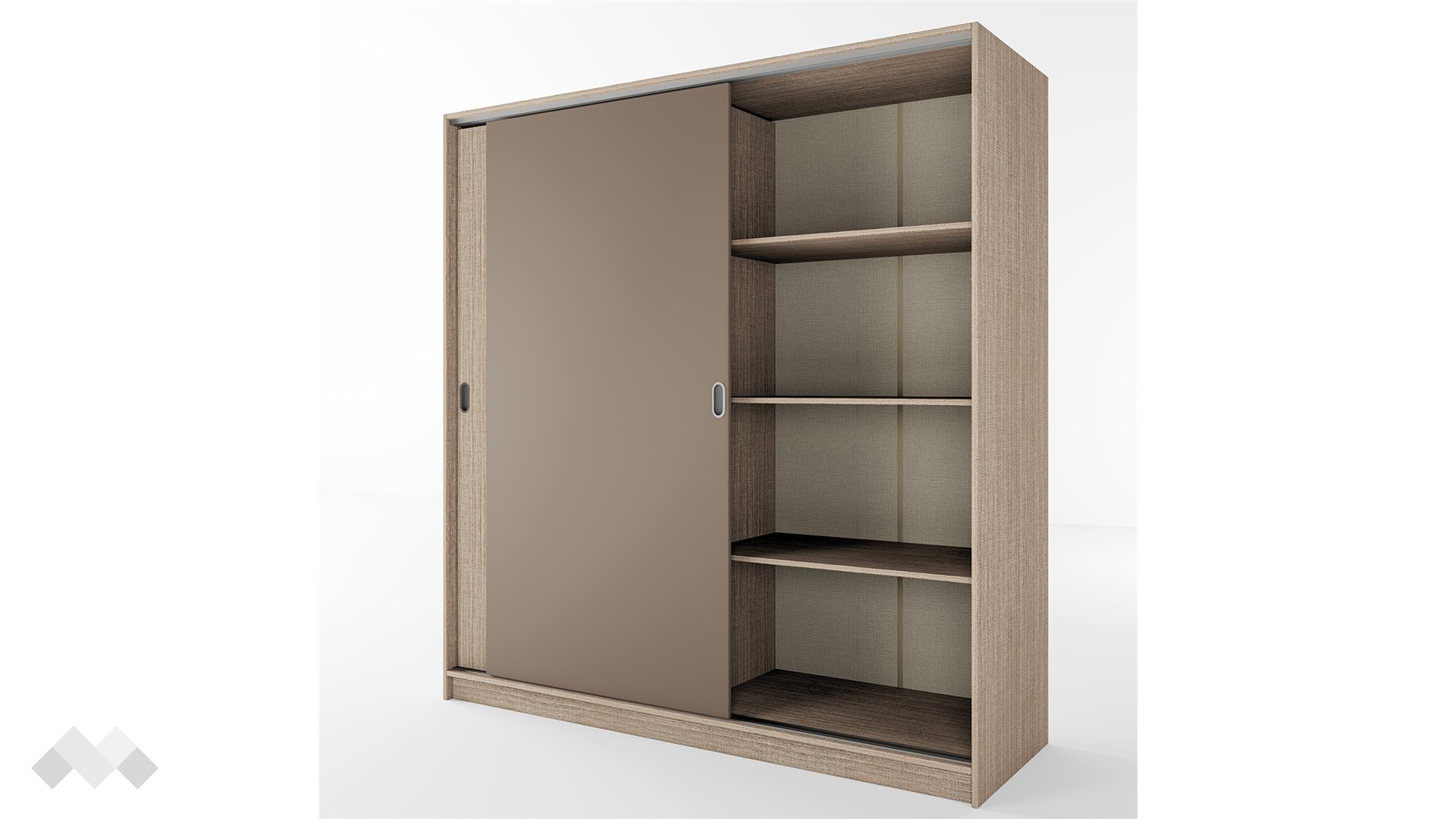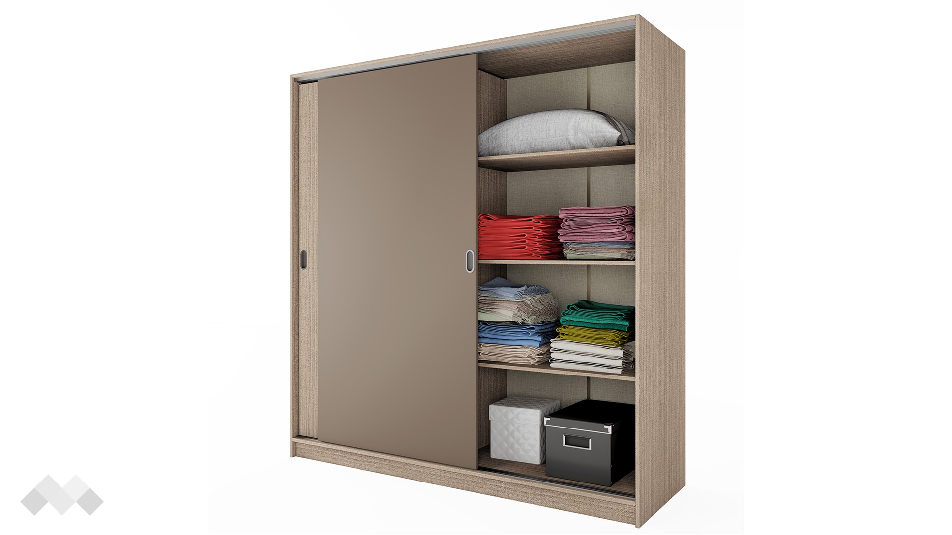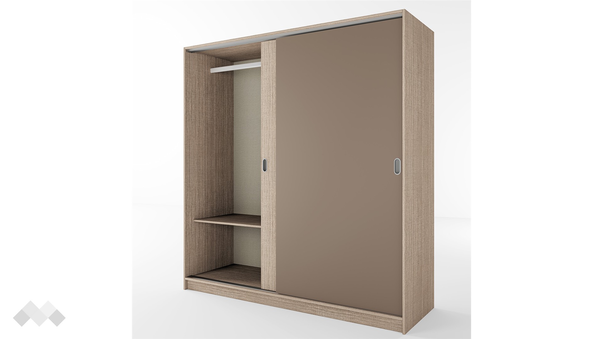 Гардероб Глендейл е перфектният избор за почитателите на практичните мебели със семпъл и изчистен дизайн. Той е двукрилен гардероб с плъзгащи врати и външен механизъм. Модерният плъзгащ механизъм прави отварянето на вратите леко и приятно, без да е необходимо допълнително пространство пред тях. Щом ги отвориш, вътре ще откриеш четири големи рафта с оптимална височина и просторно крило за закачалки.