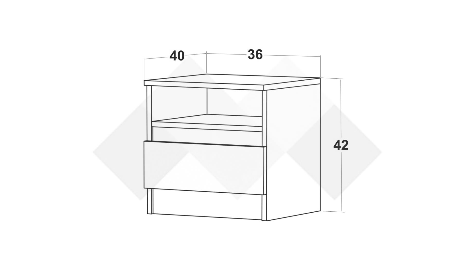 Моделът разполага с едно чекмедже за съхранение на лични вещи, както и с отворен рафт, подходящ за книги, декорации или други предмети, които искате да държите подръка.