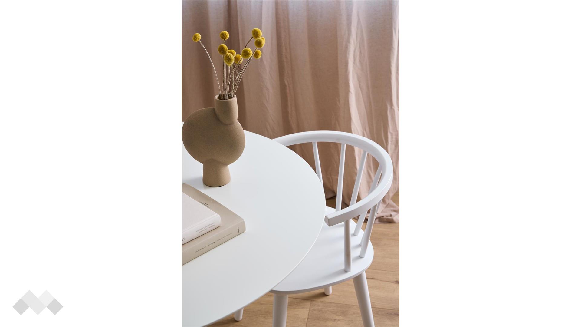 Трапезна маса Илита впечатлява със своя изчистен модерен дизайн и изискана визия. Кръглият ѝ плот, изработен от висококачествен МДФ, осигурява здравина и устойчивост, като същевременно придава лекота и елегантност на интериора.