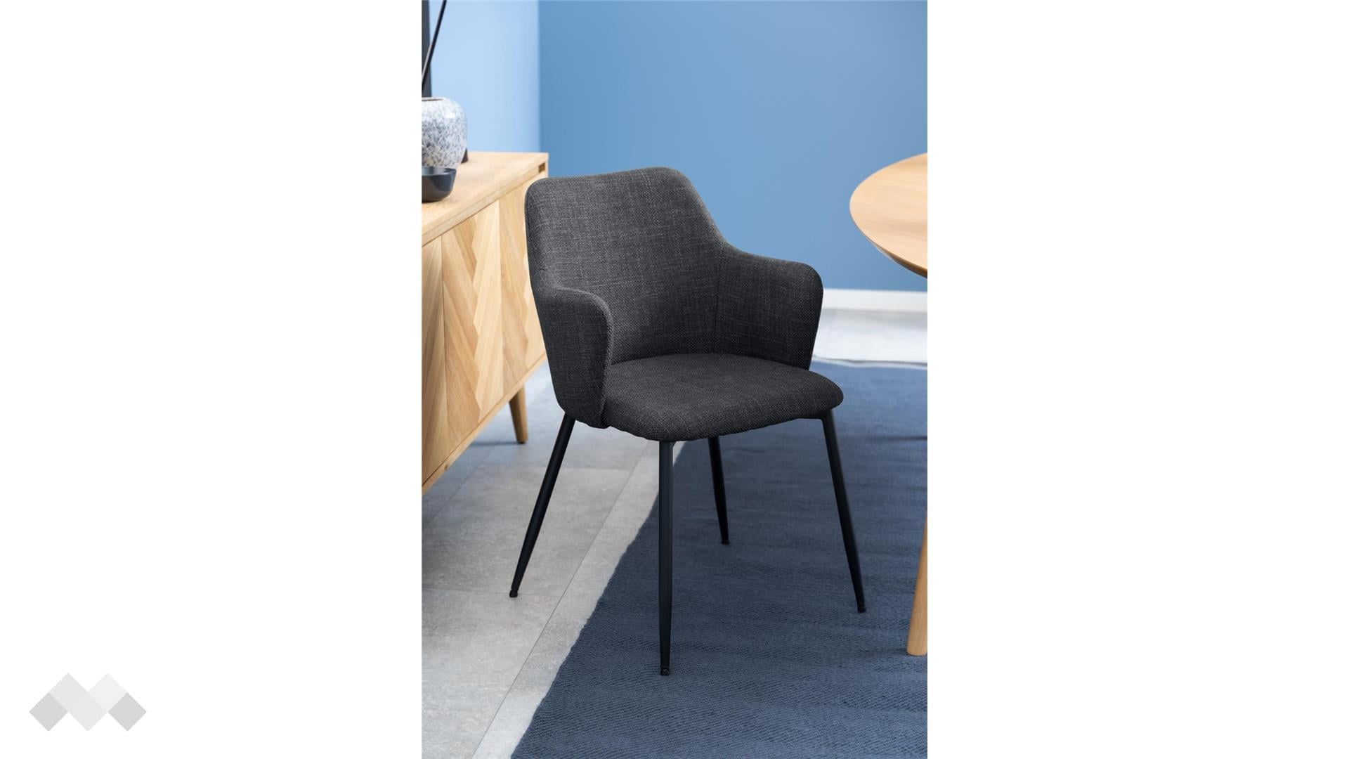 Стоманените крака придават здравина и устойчивост, като същевременно допълват стилната визия на стола. Със своите подлакътници и елегантен силует, Илза е чудесен избор за всяка трапезария или кът за сядане.