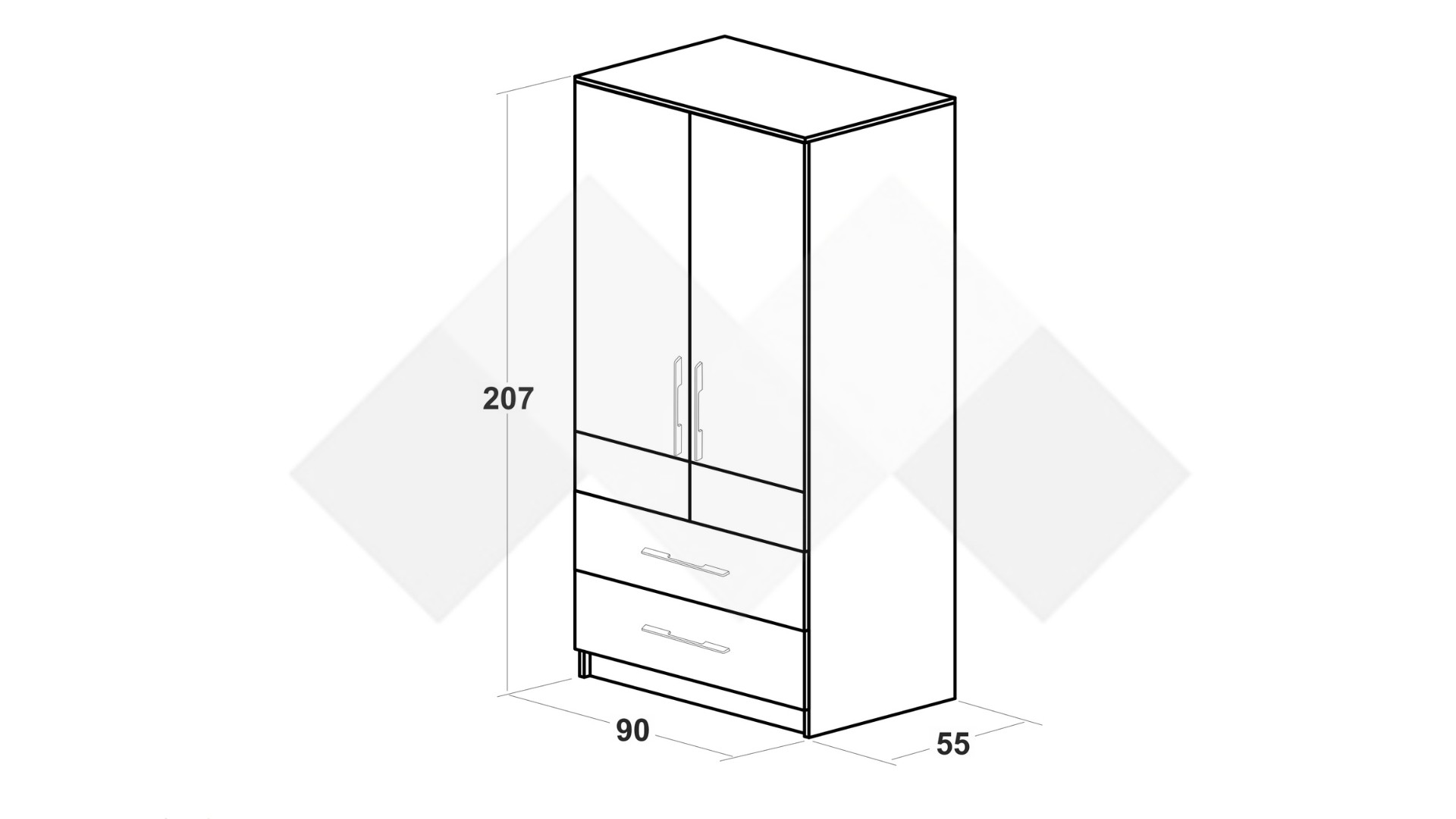 Гардероб Калифорния МК3 има практично разпределение, което ще ти позволи да подредиш добре всички дрехи и аксесоари. Той е двукрилен с рафт, две чекмеджета и лост за закачалки. Можеш да използваш рафтовете за съхранение на сгънати дрехи, в чекмеджетата да организираш бельо и аксесоари, а на закачалката да окачиш по-често използвани или фини облекла.