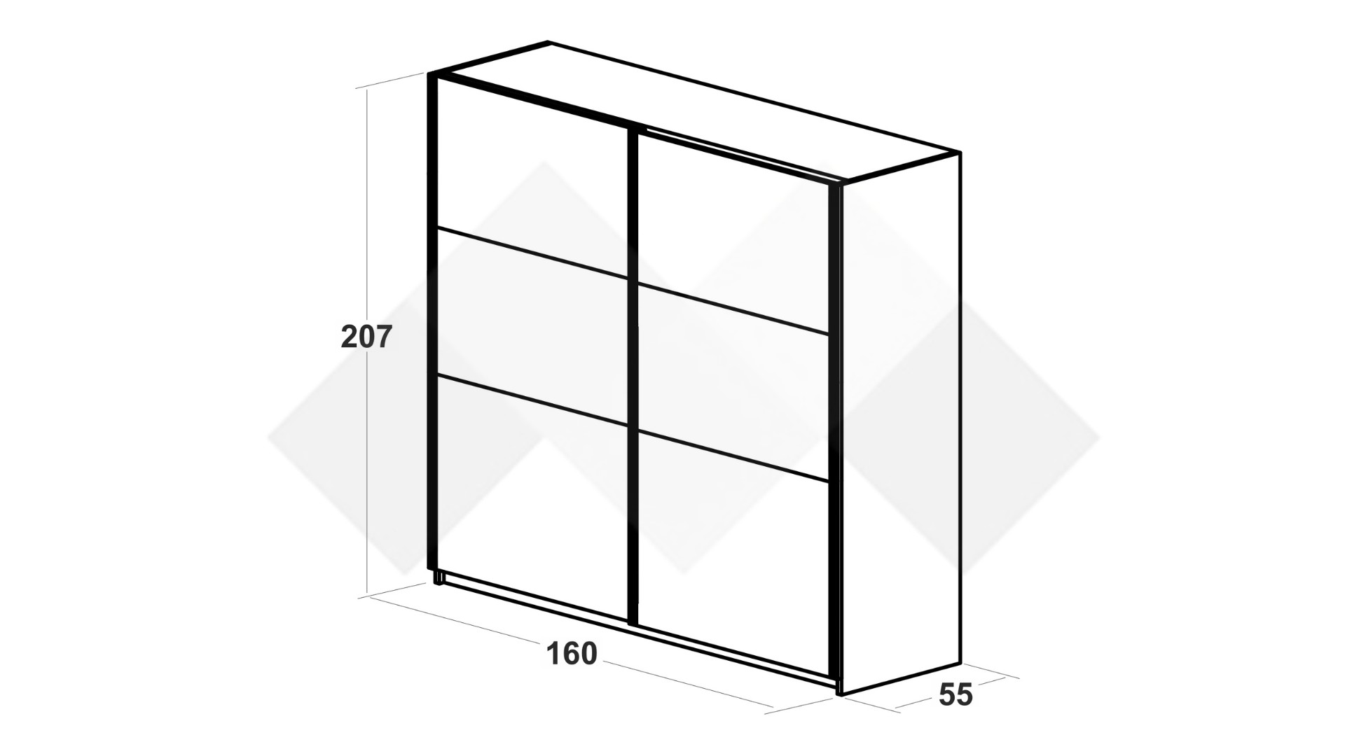 Гардероб Калифорния МК 4 е стилно решение за всеки, който търси едновременно красиви и функционални мебели. Той е с две крила и удобно плъзгащи се врати, а вътрешното му пространство предлага чудесно разпределение и бърз достъп до всичките ти вещи. Щом отвориш вратите, ще откриеш достатъчно голям обем, който да побере не само дрехи, но и допълнителен багаж, удобно организирани на четири рафта и два лоста за закачалки.