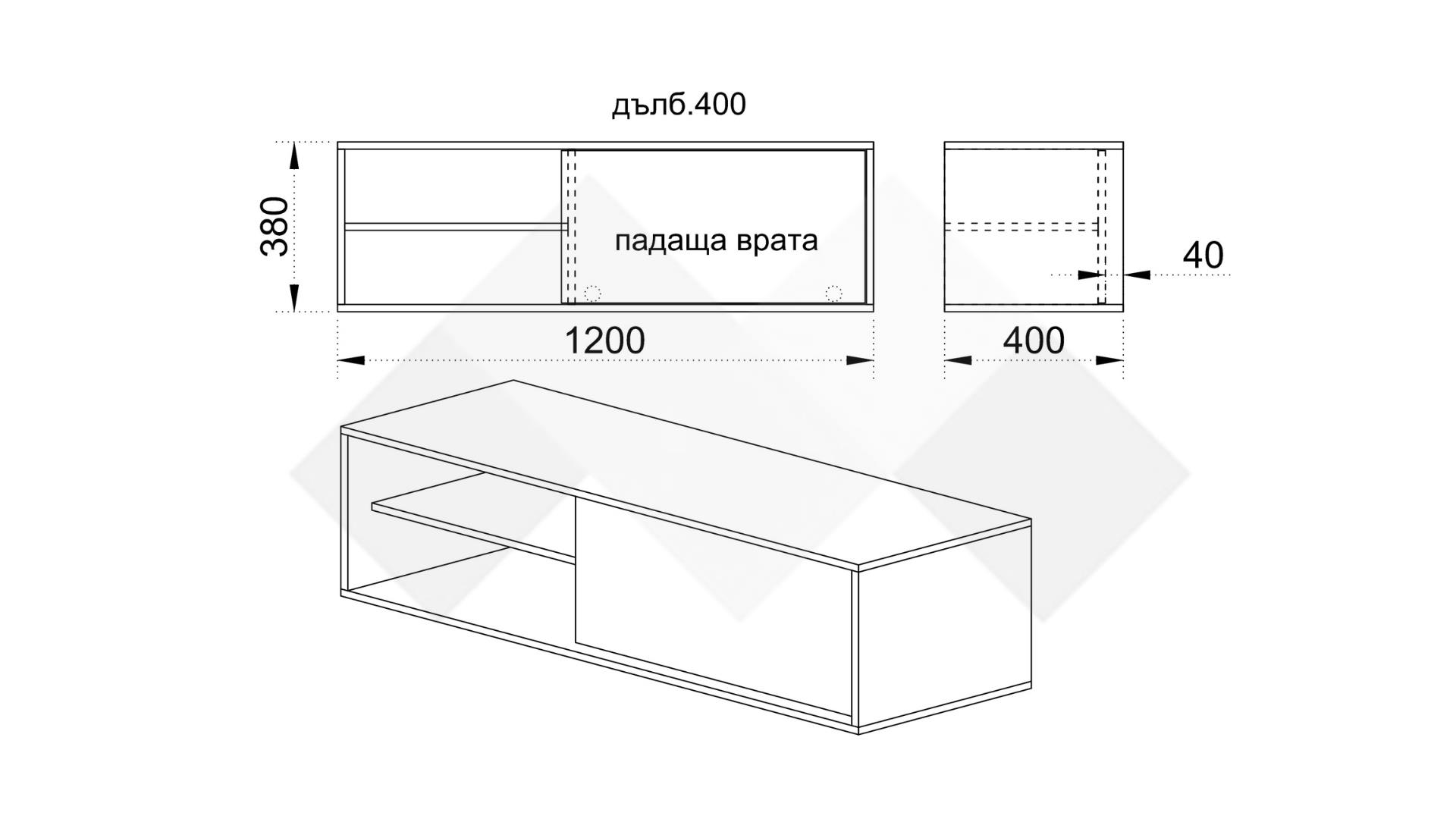 ⭐Предимства: ✓ 2 отворени рафта ✓ шкаф с падаща вратичка ✓ модерен дизайн ✓ компактен и практичен ✓ качествена изработка ✓ 16 мм ПДЧ