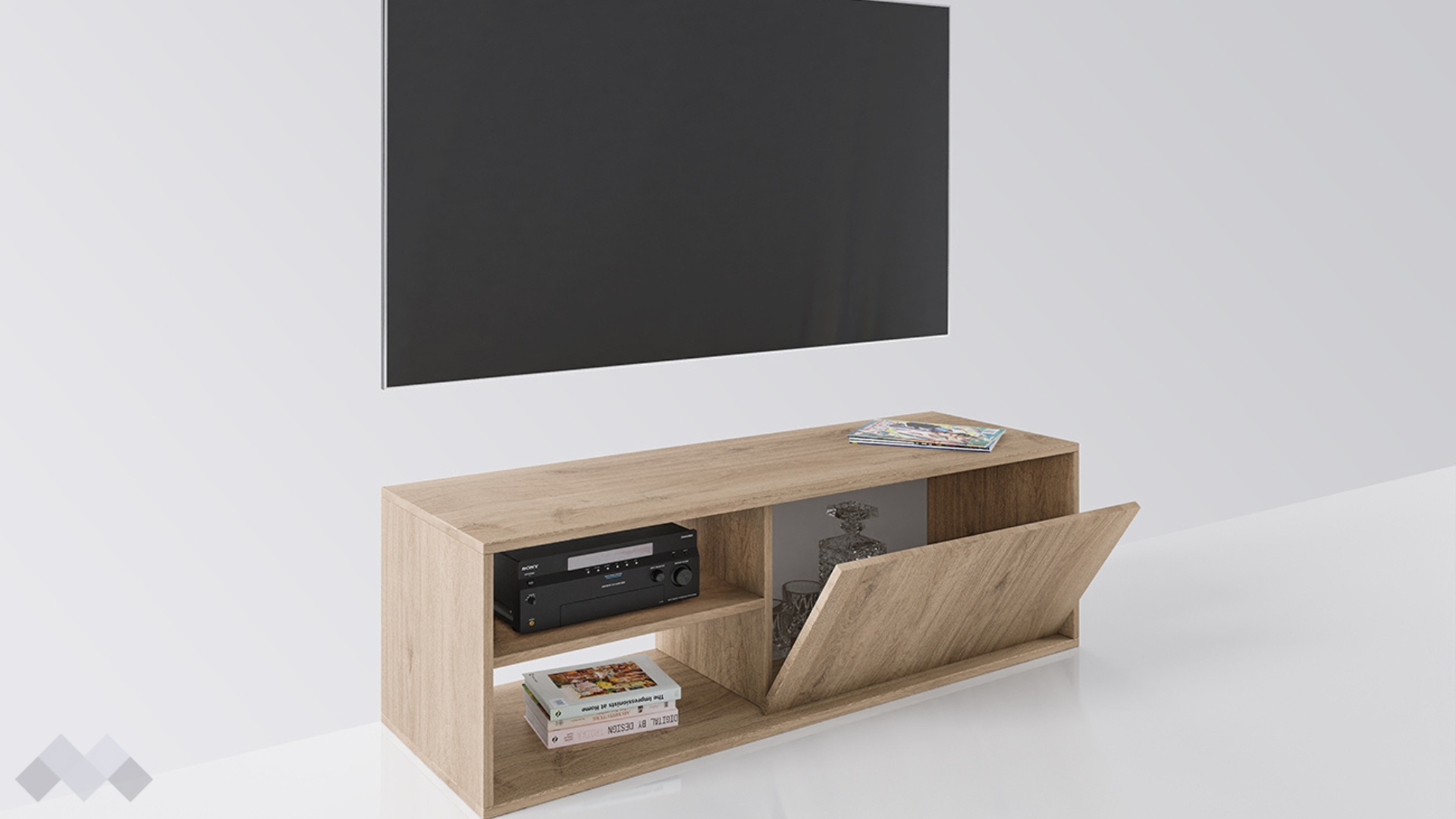 ТВ шкаф Калипсо е практична и модерна мебел, която разполага с падаща вратичка и 2 отворени рафта. В тях ще намериш място за цялата си съпътстваща техника. ТВ шкафът е компактен, което го прави подходящ и за по-малки помещения и жилища.