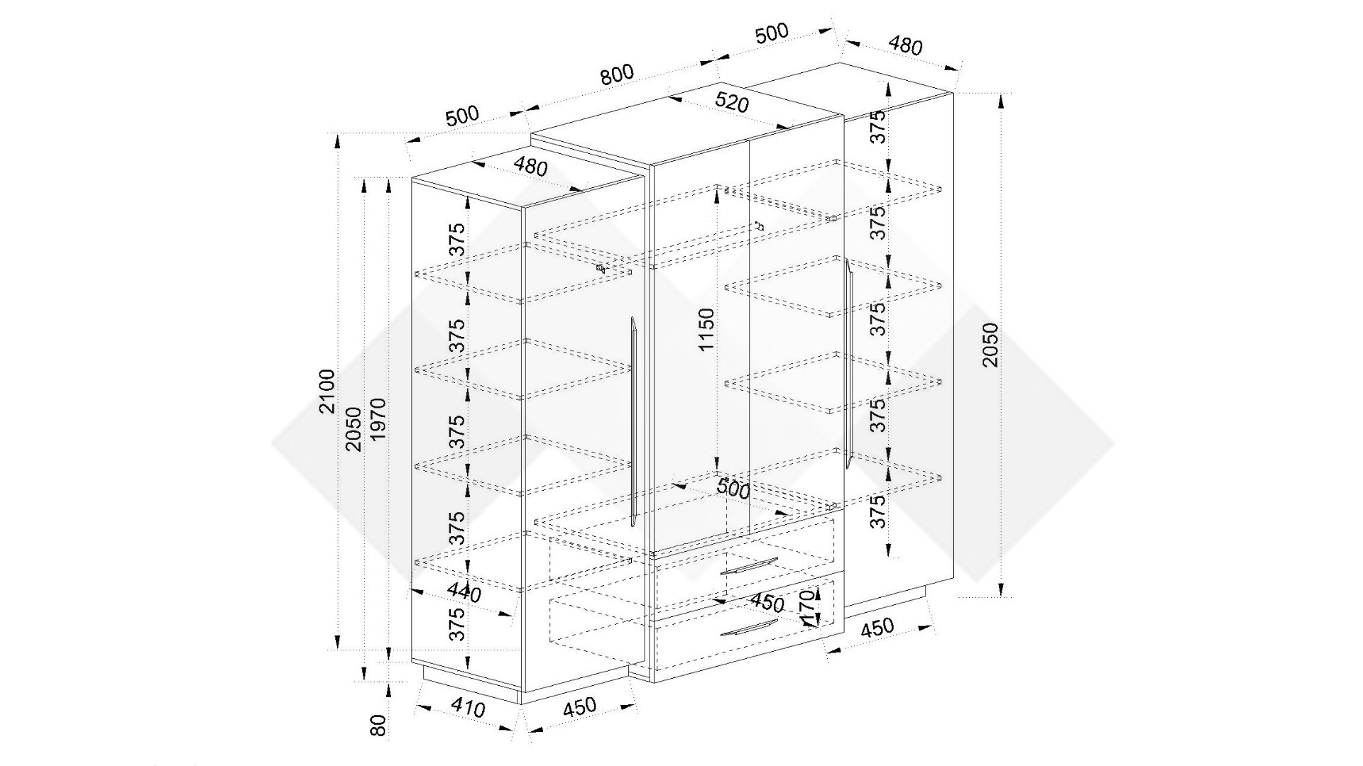 ⭐ Предимства: ✓ четирикрилен ✓ 2 чекмеджета ✓ 9 рафта ✓ лост за закачалки ✓ модерен декор ✓ практично разпределение ✓ качествена изработка ✓ 16 мм ПДЧ