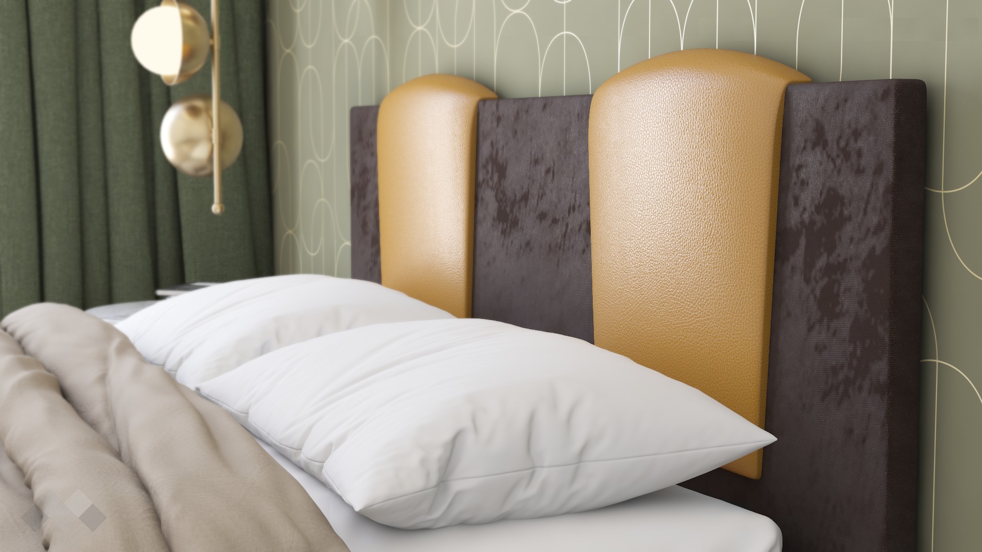 Тя е с идеалните размери – подходяща е за матрак с размер 160/200 см. Таблата и основата са тапицирани в приятна на допир дамаска, но еко кожата в златист цвят я превръща в истинско бижу. Това ти дава възможност да се облегнеш назад, когато гледаш телевизия или четеш книга, без да ти е необходима допълнителна възглавница.