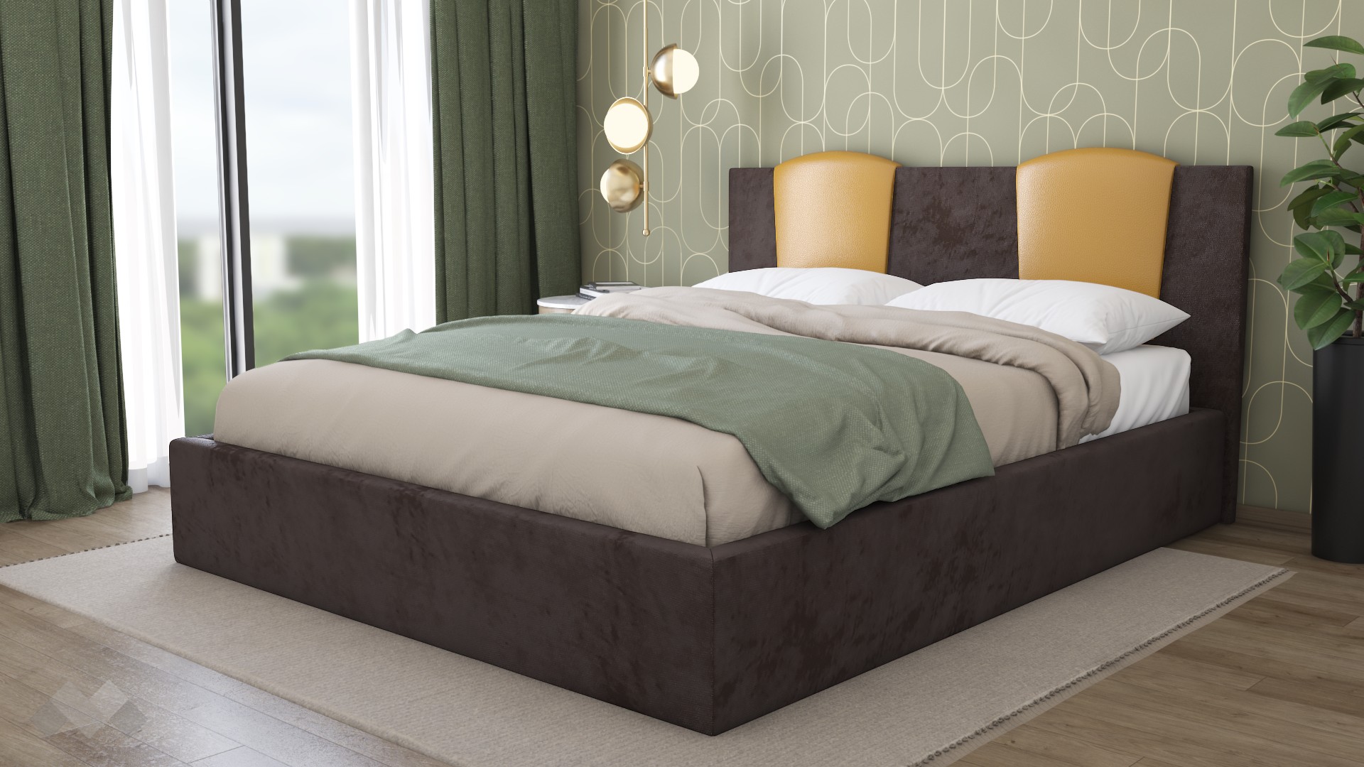 Тапицирана спалня 160/200Камеакафява със златисто