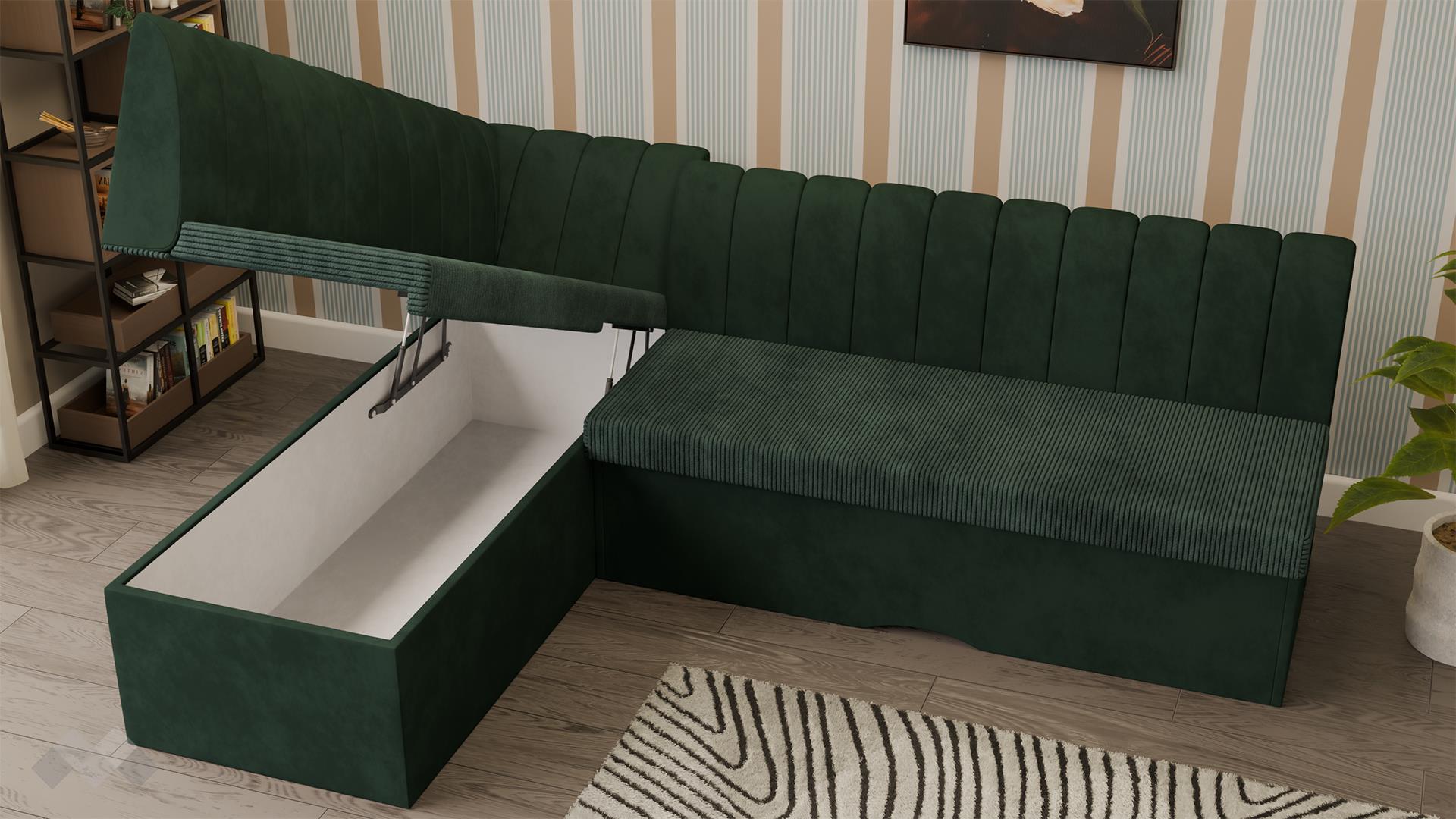 Ъгълът е проектиран за удобно ползване до трапезната маса вкъщи - средна мекота на седалната част и подходяща височина. Комфортът е гарантиран от меката облегална част.