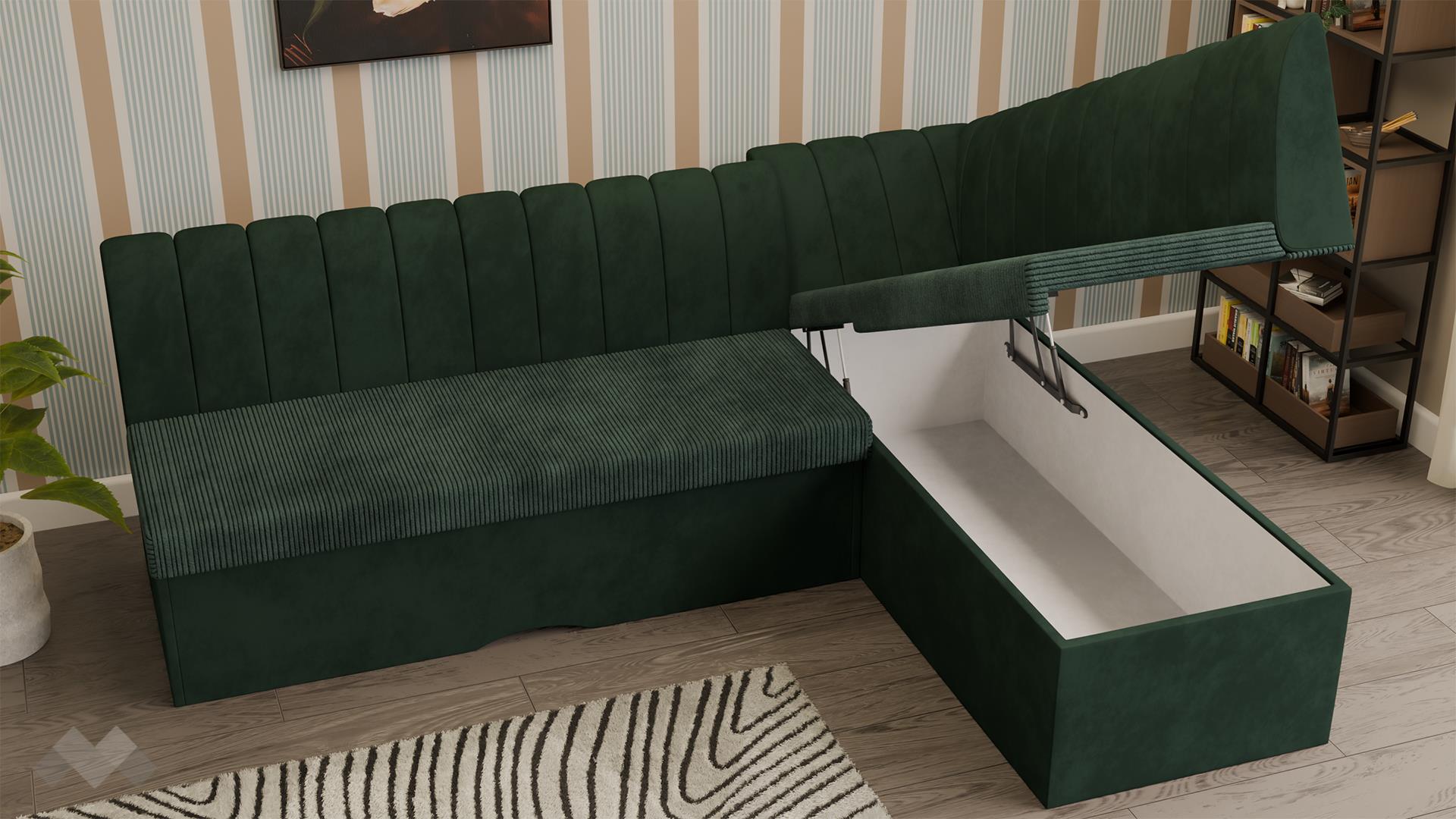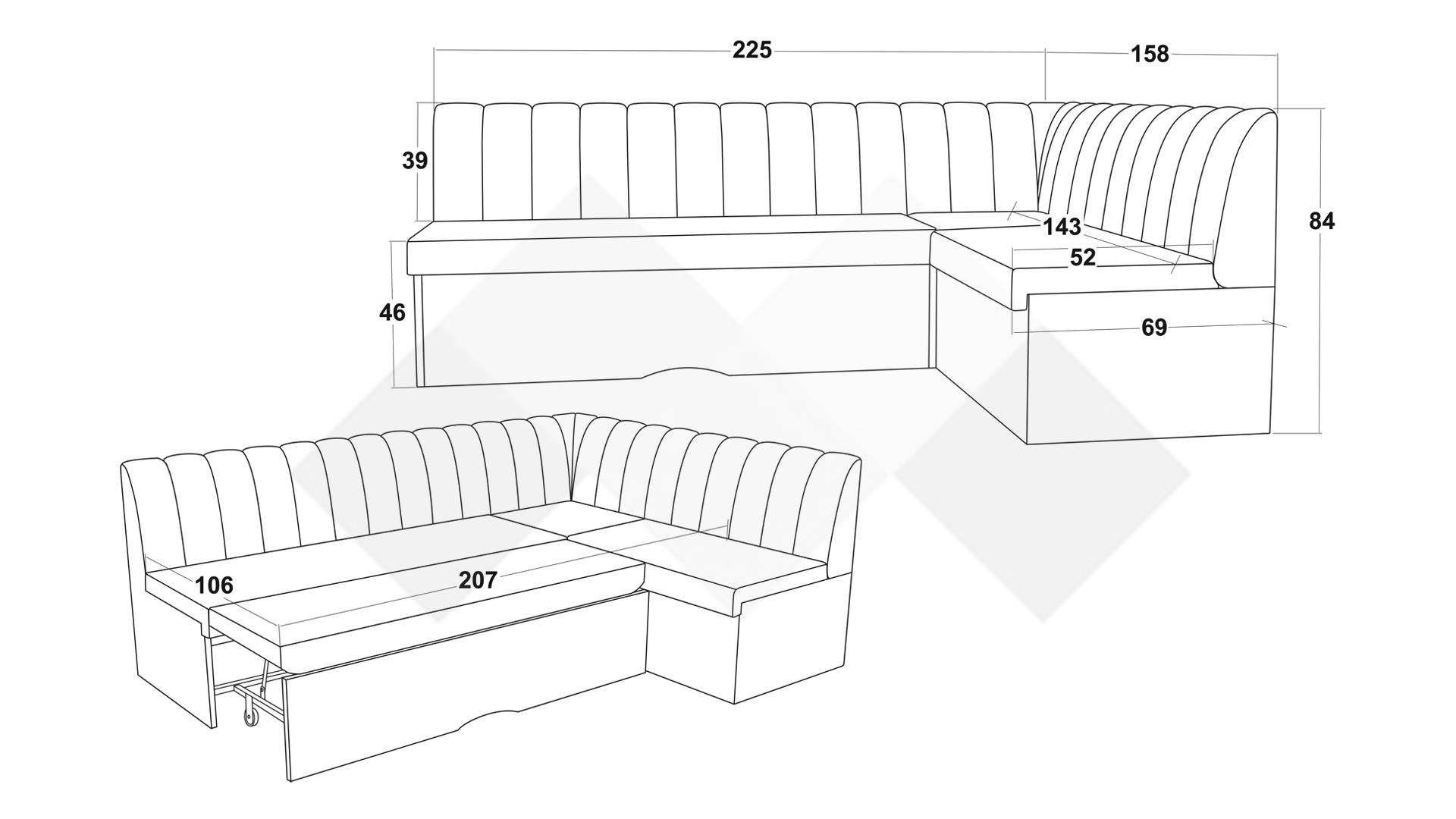 Ъгълът е проектиран за удобно ползване до трапезната маса вкъщи - средна мекота на седалната част и подходяща височина. Комфортът е гарантиран от меката облегална част.