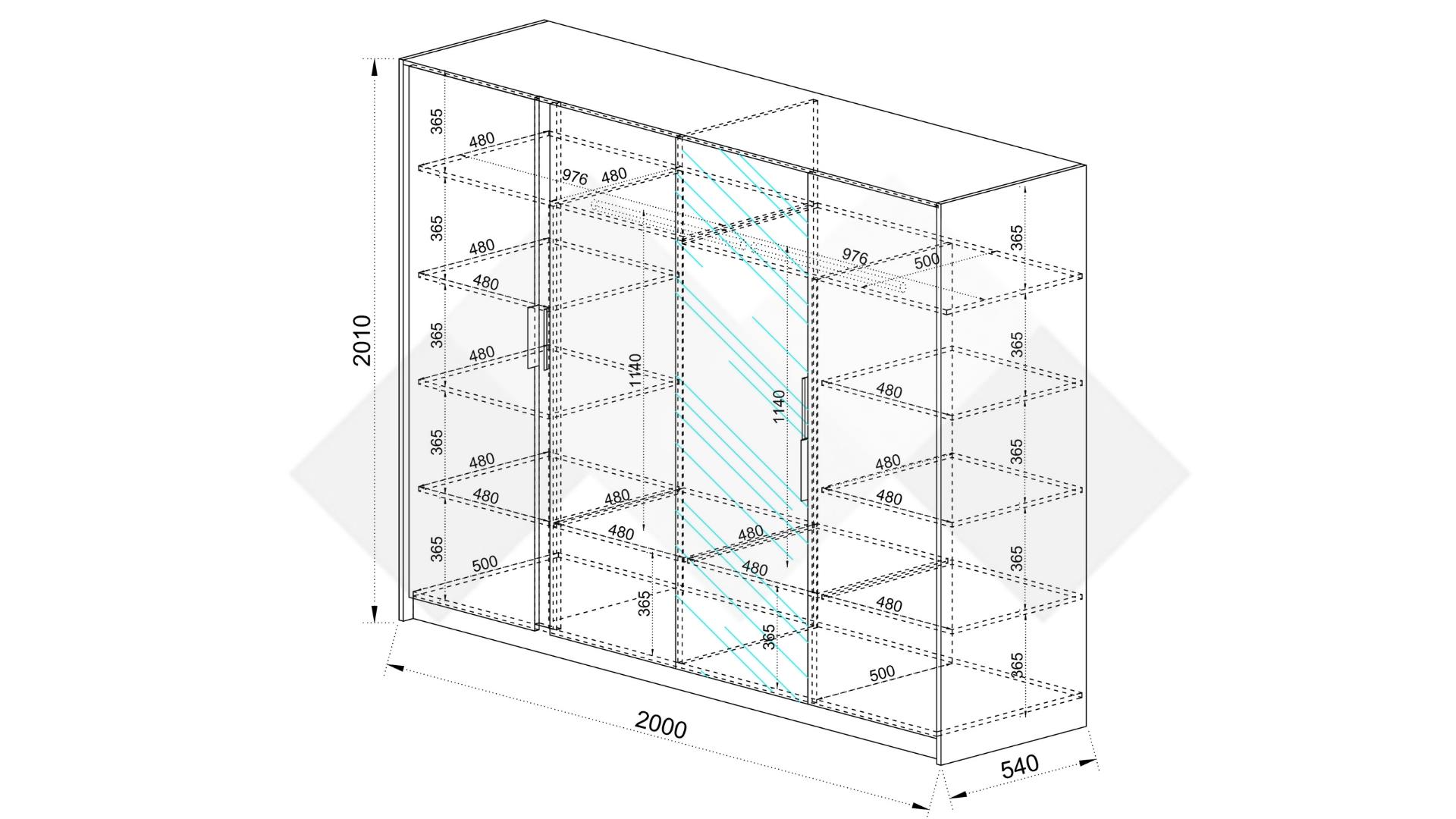 ✓ четирикрилен ✓ огледало ✓ 12 рафта ✓ 2 лоста за закачалки ✓ качествена изработка ✓ 16 мм ПДЧ