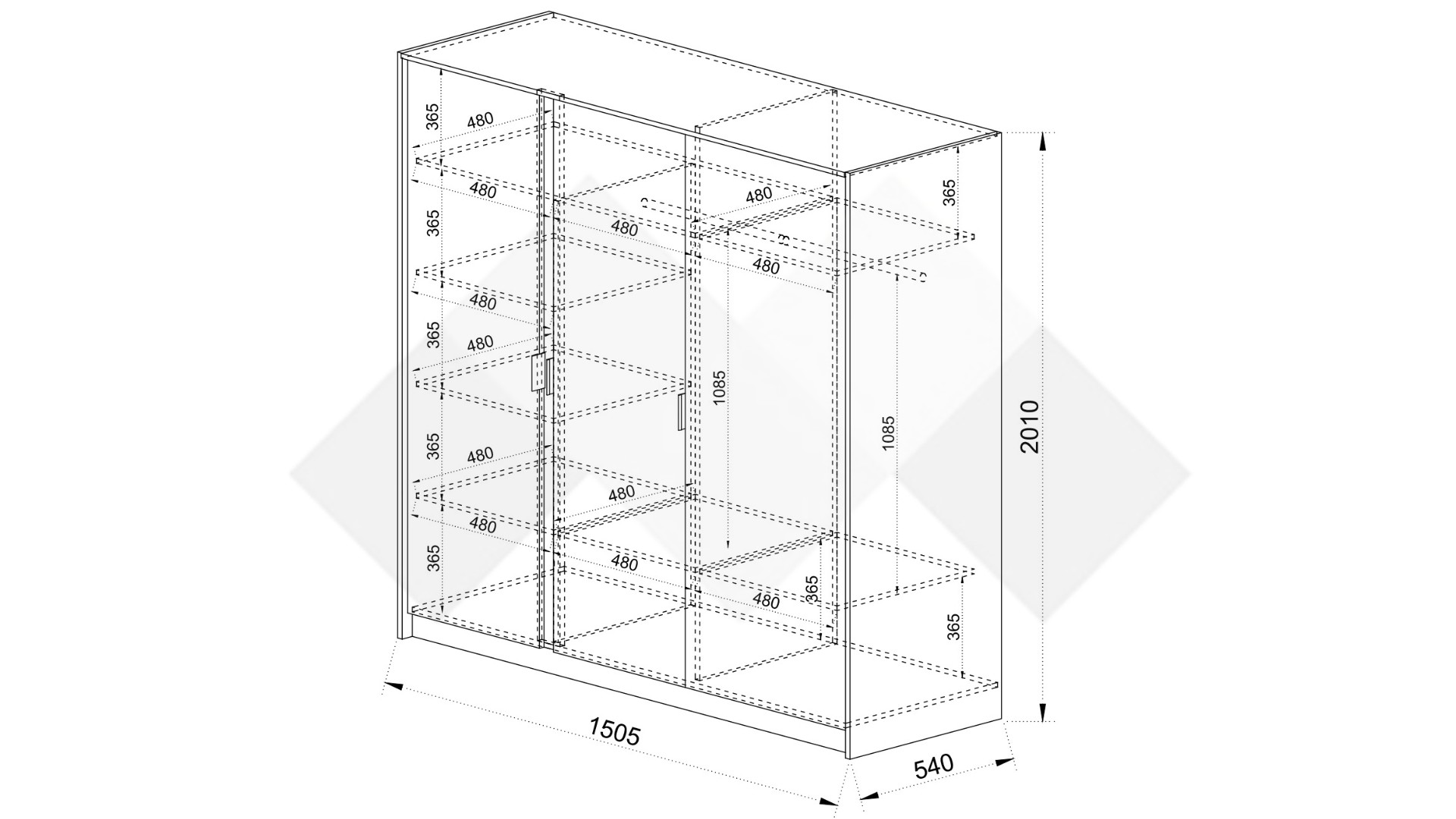 Д: 150,5 см Ш: 54 см В: 201 см