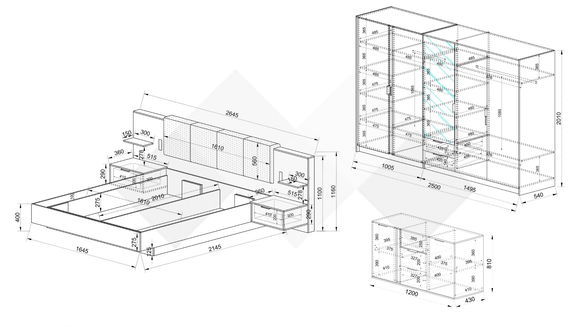 ✓ 16 мм ПДЧ ✓ спалня за матрак 160/200 ✓ тапицирана табла ✓ LED осветление ✓ 2 нощни шкафчета ✓ петкрилен гардероб ✓ скрин ✓ практично разпределение ✓ механизъм за плавно затваряне ✓ качествена изработка ✓ модерен и функционален дизайн